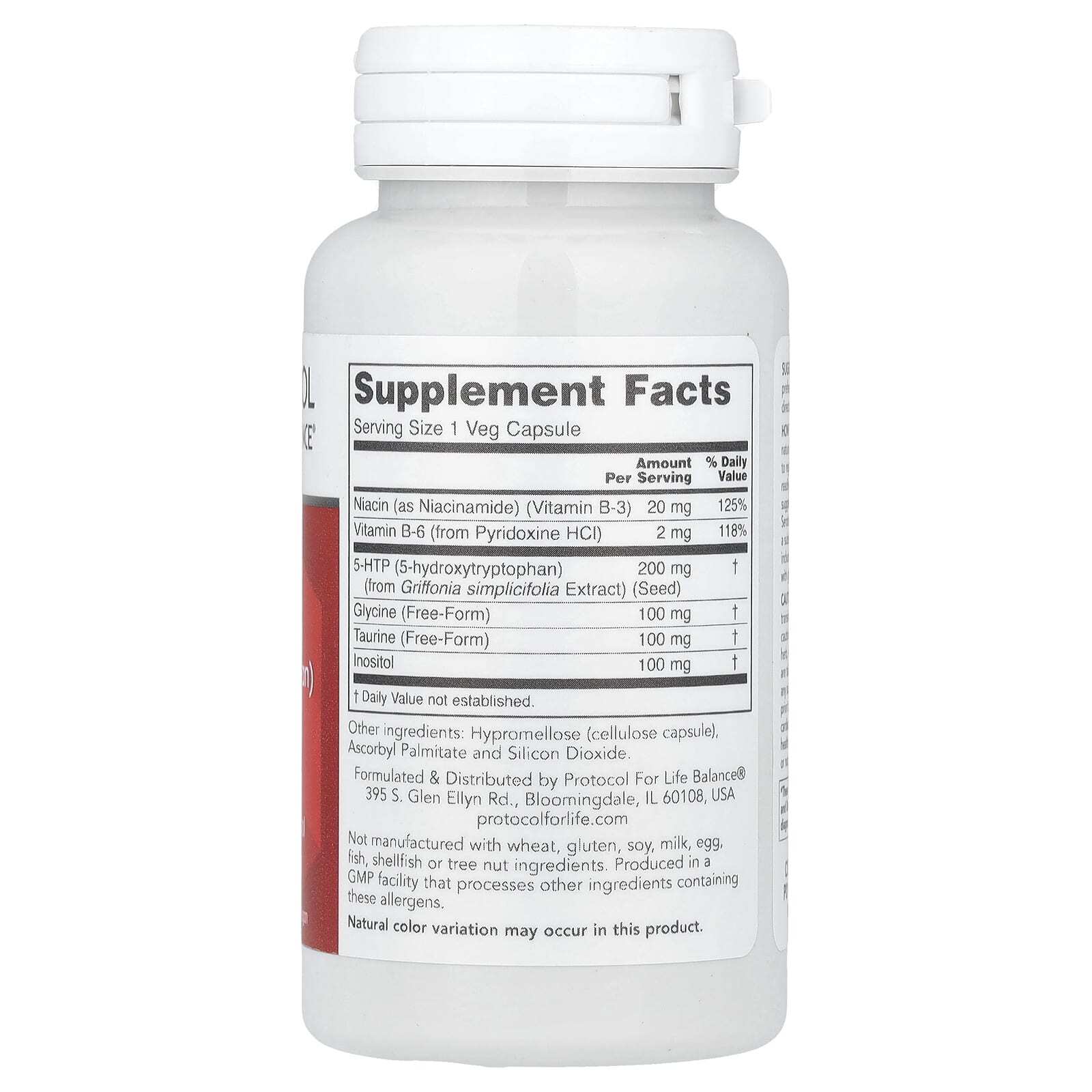Принцип действия 5-HTP является промежуточным предшественником в естественном синтезе серотонина, нейромедиатора, который помогает регулировать настроение, аппетит и циклы сна и бодрствования. 5-HTP легко проникает через гематоэнцефалический барьер, а клинические исследования показывают, что 5-HTP может поддерживать здоровый уровень серотонина. Серотонин связан с хорошим настроением и обеспечивает субстрат для выработки мелатонина. Эта формула содержит витамины группы B в качестве кофакторов, а также глицинат, таурин и инозитол.