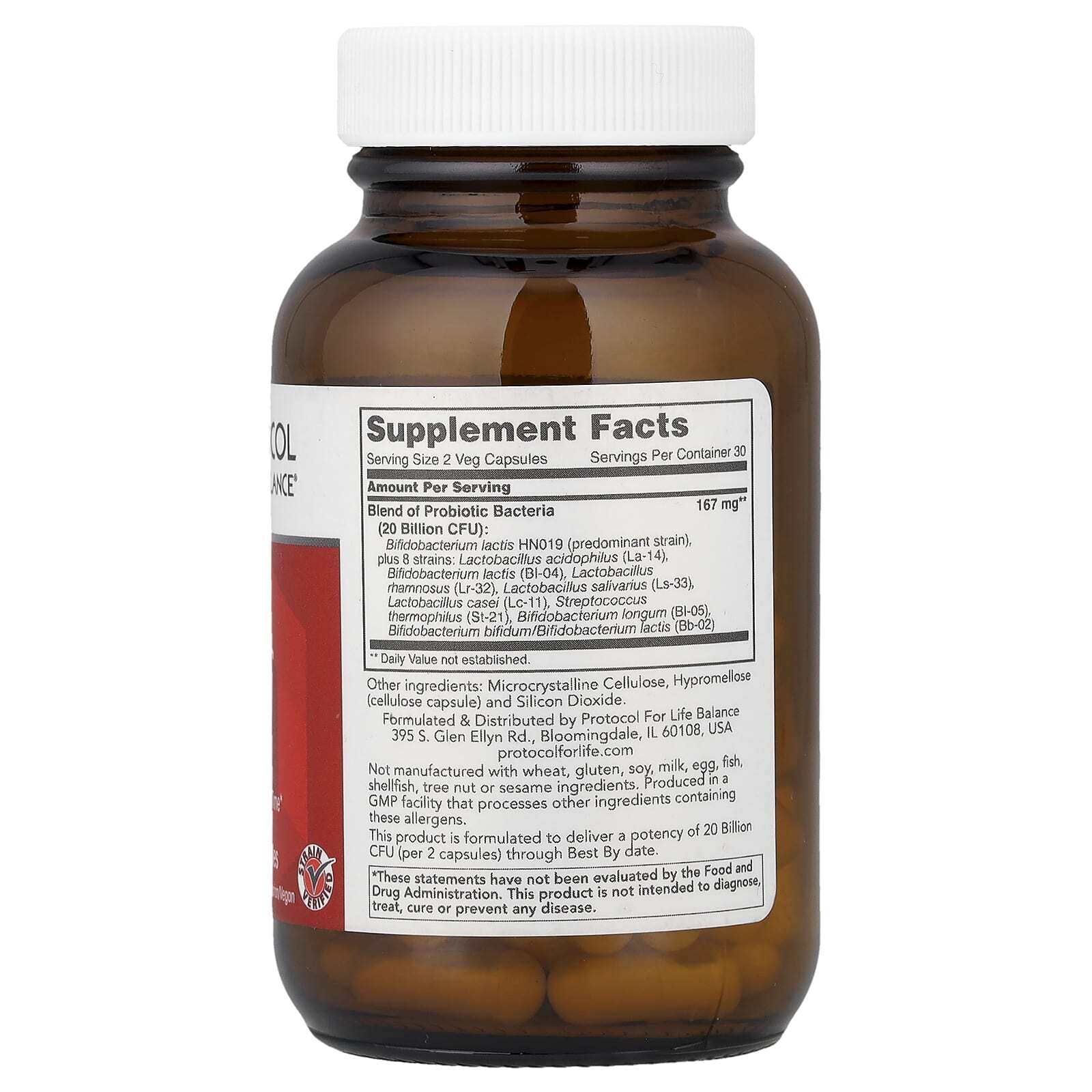 Штаммы пробиотиков в этом продукте прошли проверку на идентичность с помощью технологии снятия отпечатков пальцев.