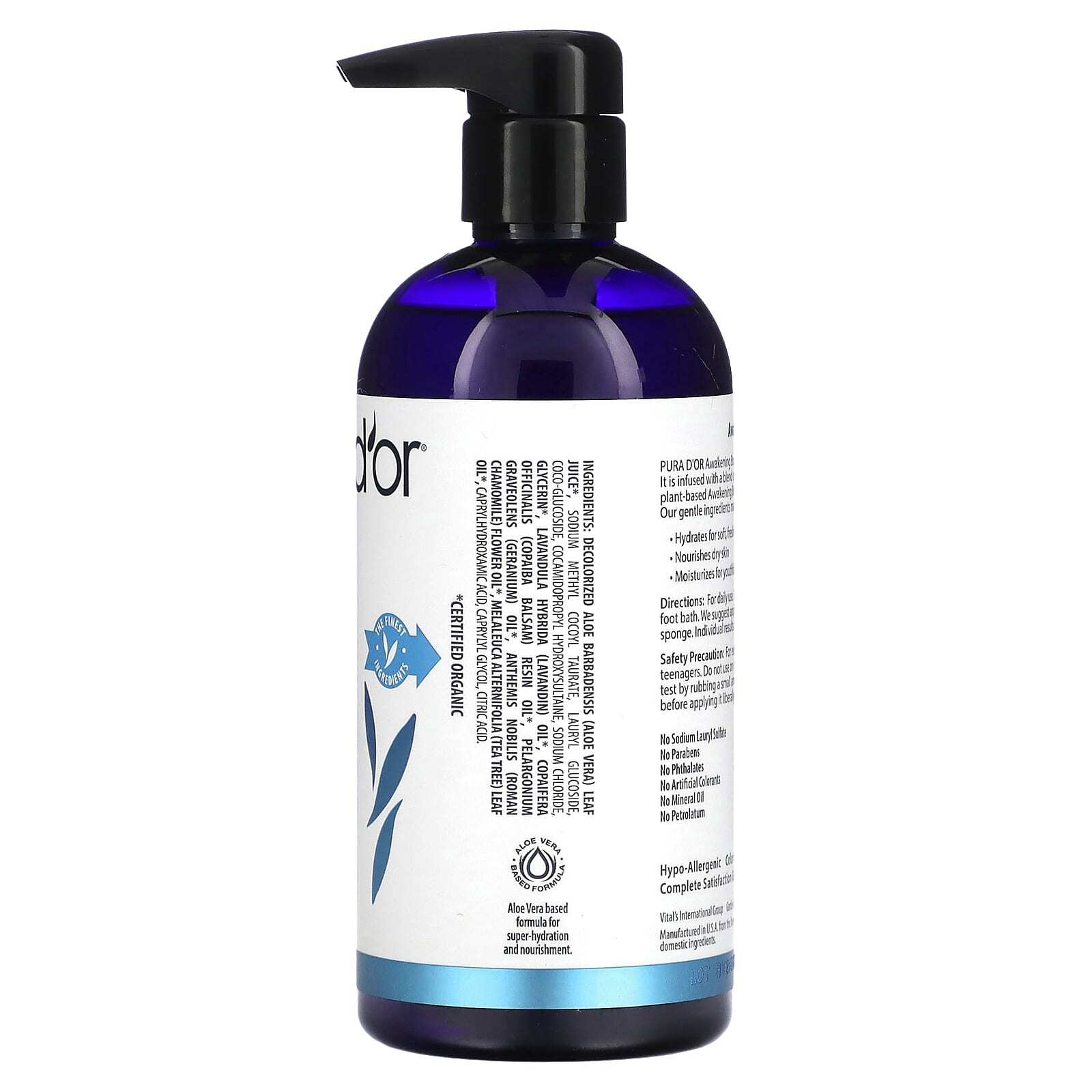 Гель для душа PURA D'OR Awakening производится в США на экологически чистом предприятии. В его состав входит смесь масел чайного дерева, ромашки и лаванды. Пробуждающий гель для душа на растительной основе увлажняет, очищает и освежает кожу. Наши нежные ингредиенты делают гель для душа Awakening идеальным средством для любого типа кожи.