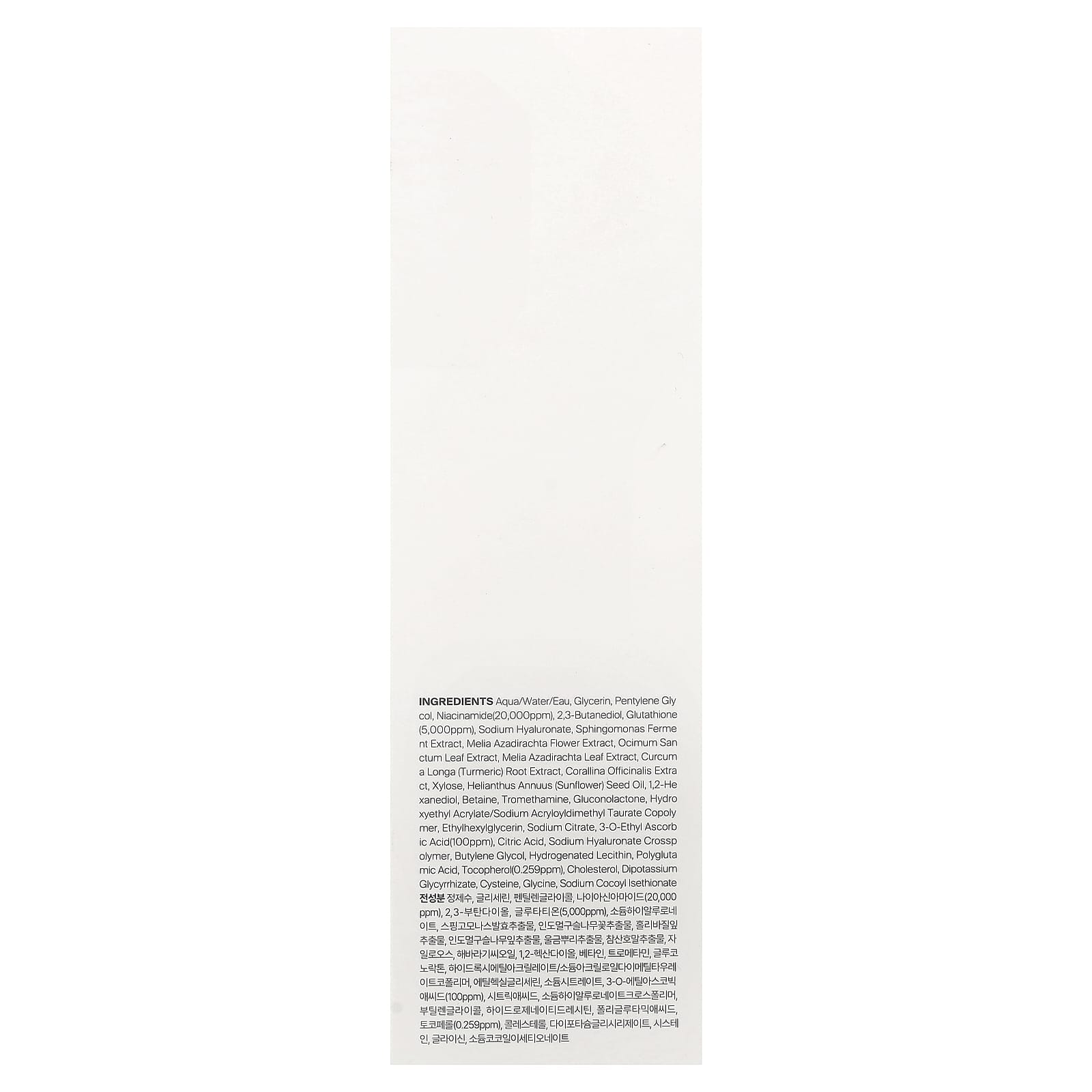Вода (Aqua/eau), глицерин, пентилен гликоль, никотинамид (20 000 част./млн), 2,3-бутандиол, глутатион (5000 част./млн), гиалуронат натрия, экстракт продукта ферментации бактерий рода Sphingomonas, экстракт цветков дерева ним (Melia azadirachta), экстракт листьев туласи (Ocimum sanctum), экстракт листьев дерева ним (Melia azadirachta), экстракт корня куркумы (Curcum longa), экстракт кораллины лекарственной (Corallina officinalis), ксилоза, подсолнечное масло (Helianthus annuus), 1,2-гександиол, бетаин, трометамин, глюконолактон, гидроксиэтил акрилат/натрия акрилоилдиметилтаурата сополимер, этилгексилглицерин, цитрат натрия, 3-o-этил-аскорбиновая кислота (100 част./млн), лимонная кислота, кроссполимер гиалуроната натрия, бутиленгликоль, гидрогенизированный лецитин, полиглутаминовая кислота, токоферол (0,259 част./млн), холестерина, дикалия глицирризат, цистеин, глицин, кокоил изетионат натрия.