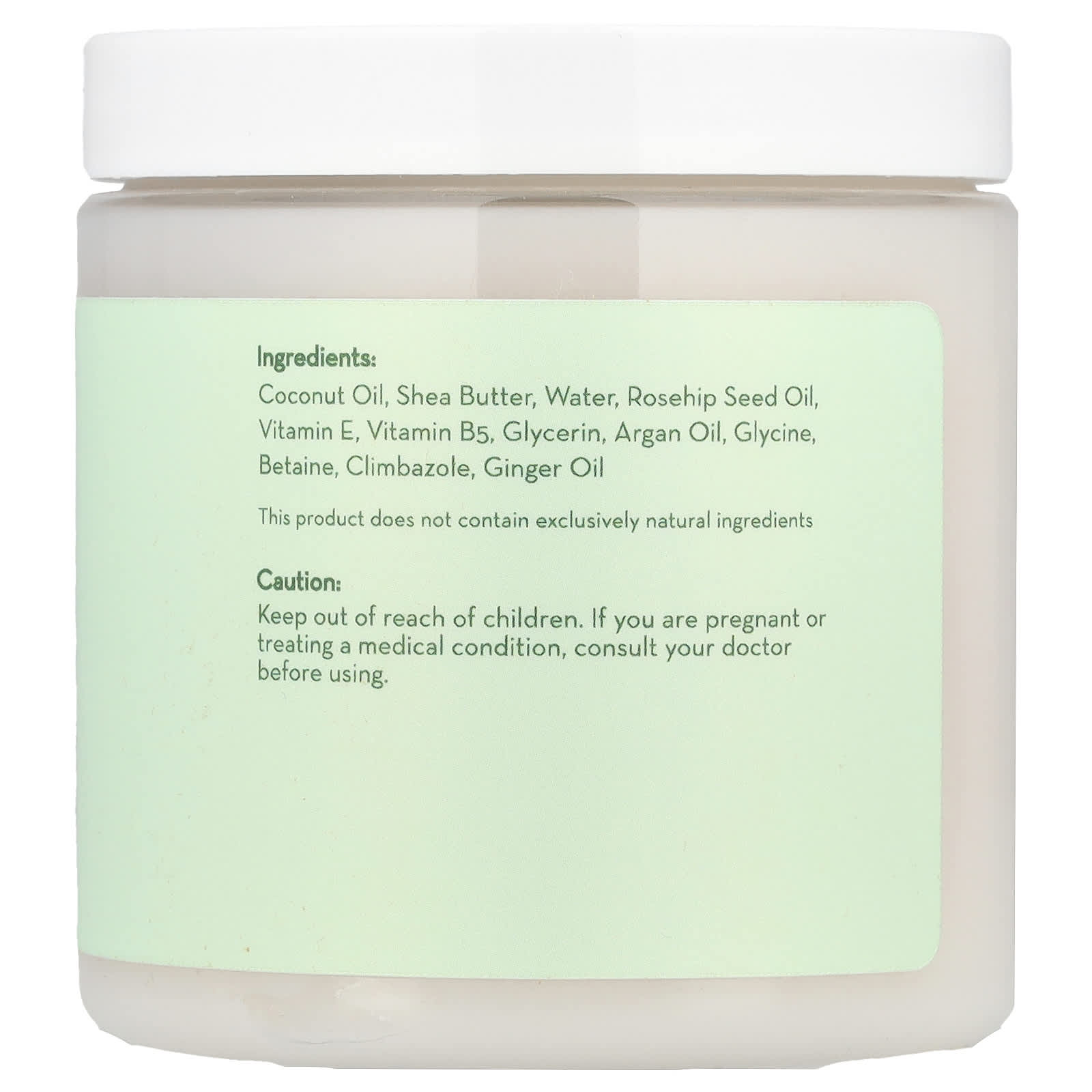 Кокосовое масло, масло ши, вода, масло из семян шиповника, витамин E, витамин B5, глицерин, аргановое масло, глицин, бетаин, климбазол, масло имбиря.