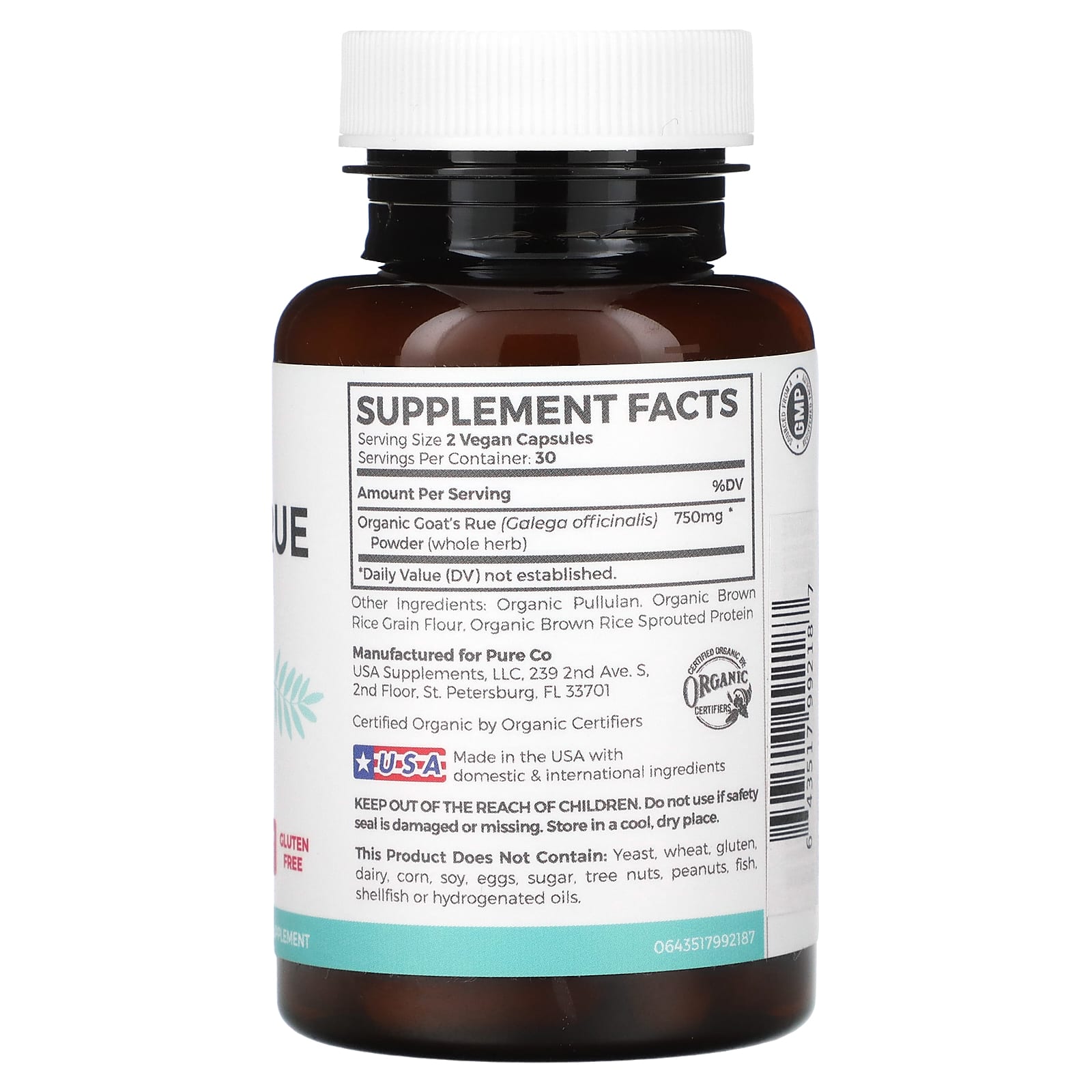 | Порошок органической козьей рутины (Galega officinalis) (цельное растение) | 750 мг | * |