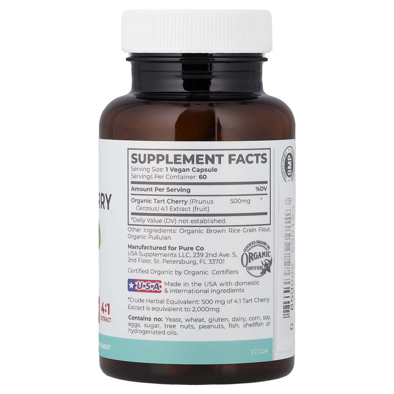 Неочищенный растительный эквивалент:500 мг экстракта вишни в соотношении 4:1 эквивалентны 2000 мг.