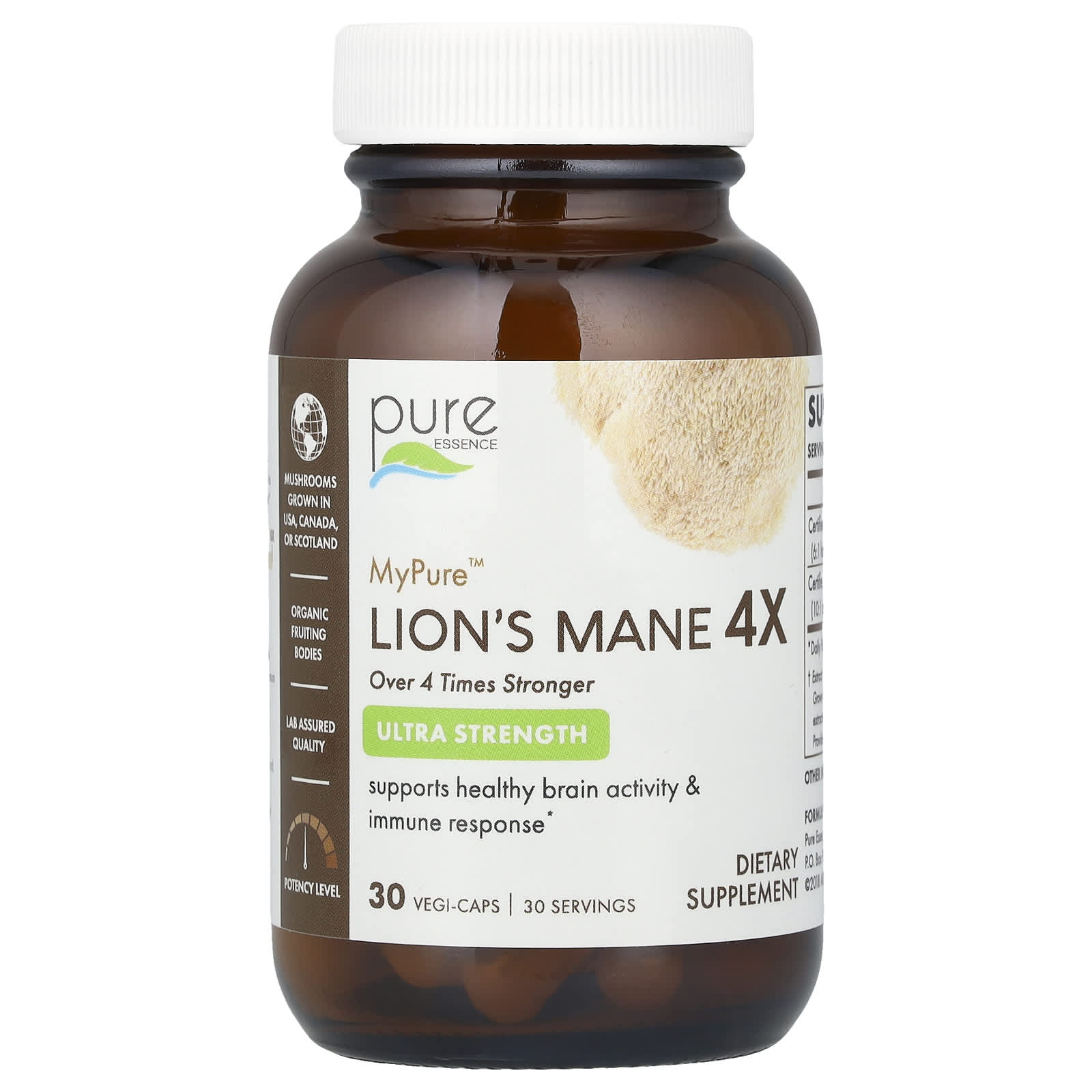 В состав MyPure ™ Lion's Mane 4X входят экстракты сертифицированных органических плодовых тел львиной гривы в соотношении 1: 1 и 8: 1. Каждая партия проходит лабораторные испытания на чистоту и эффективность. Львиная грива поддерживает: