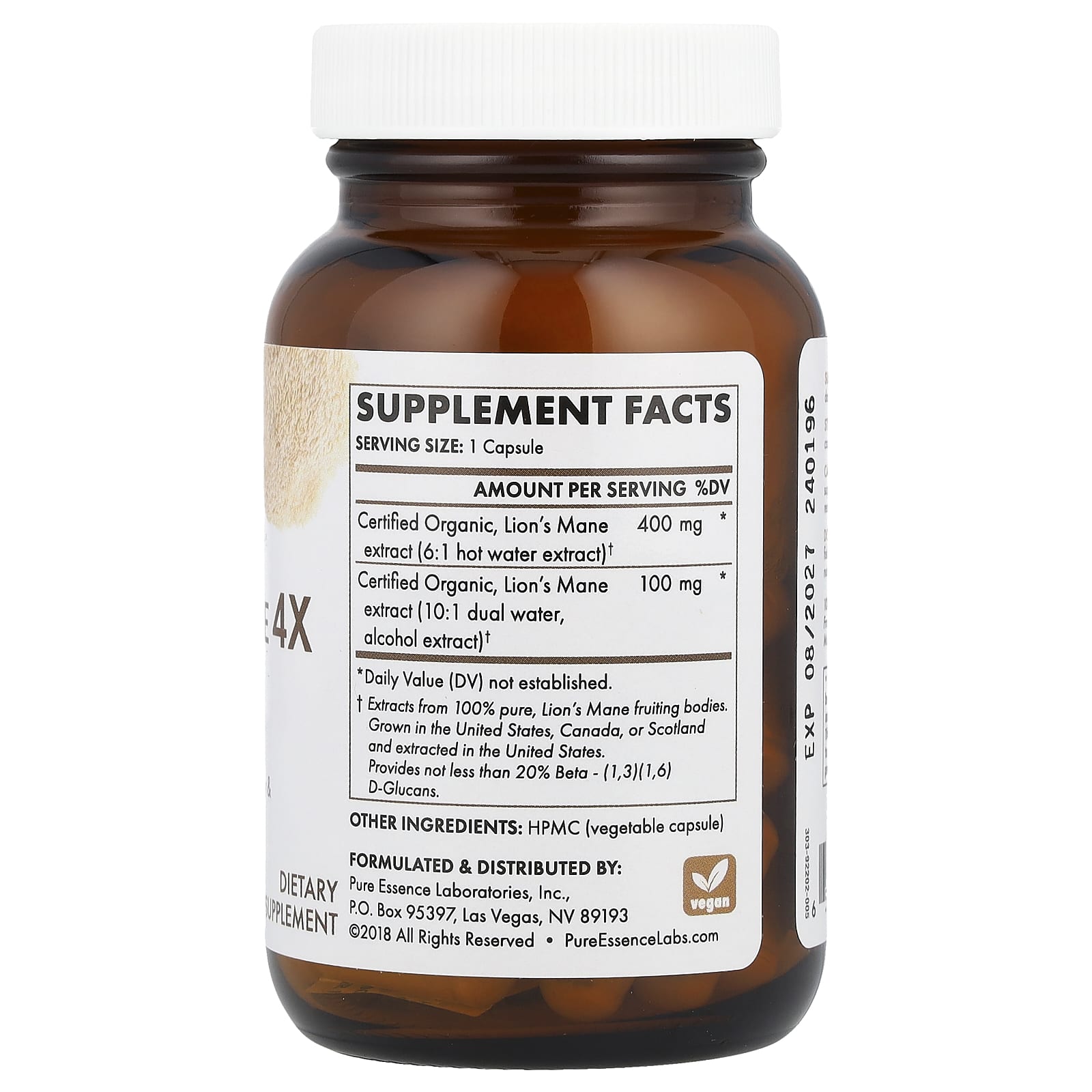| * Суточная норма не определена. † Экстракты из 100% чистых плодовых тел львиной гривы. Выращивается в США, Канаде или Шотландии и добывается в США. Содержит не менее 20% бета- (1,3) (1,6) D-глюканов. | ||
