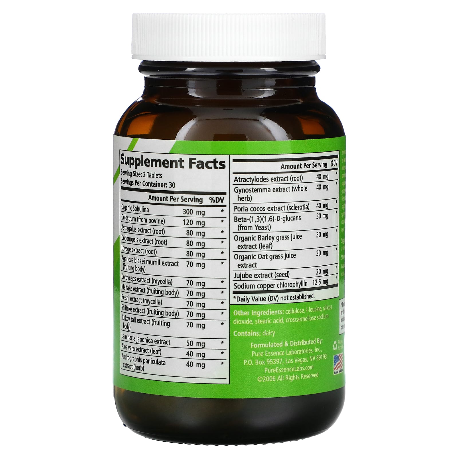 Добавка Immune Support System™ содержит большое количество бета-глюканов и других поддерживающих иммунитет полисахаридов из грибов, алоэ вера, ламинарии японской и молозива. Она также содержит суперфуды, такие как спирулина, ростки овса и ячменя и легендарные поддерживающие иммунитет травы, такие как астрагал, кодонопсис и гиностемма. Объединившись, эти ингредиенты создают удивительный синергетический эффект, который поддерживает краткосрочный иммунный ответ, а также помогает накапливать энергию, необходимую для поддержки долгосрочного здоровья.