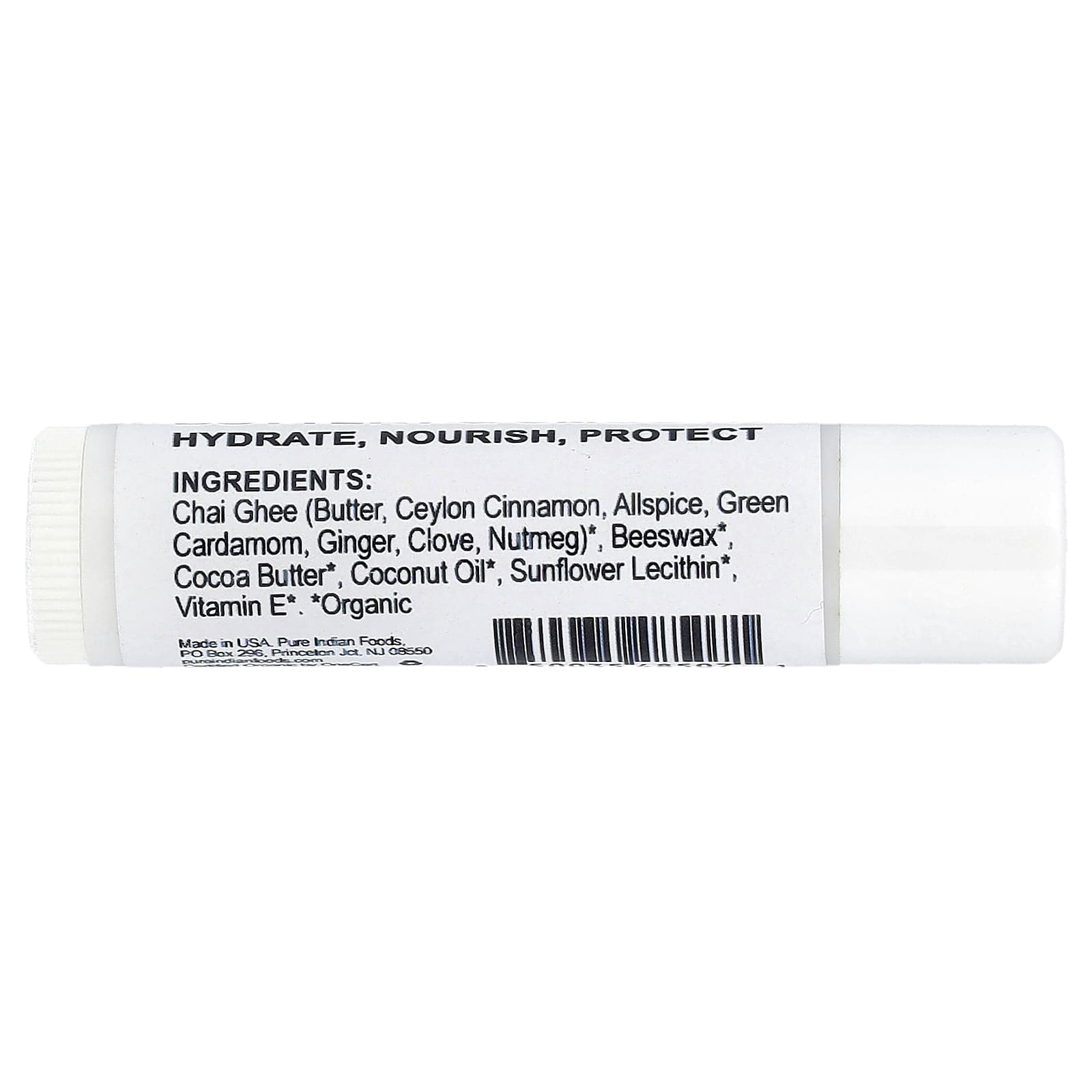 Чай гхи (масло, цейлонская корица, душистый перец, зеленый кардамон, имбирь, гвоздика, мускатный орех) *, пчелиный воск * какао-масло *, кокосовое масло *, подсолнечный лецитин и витамин Е *.
