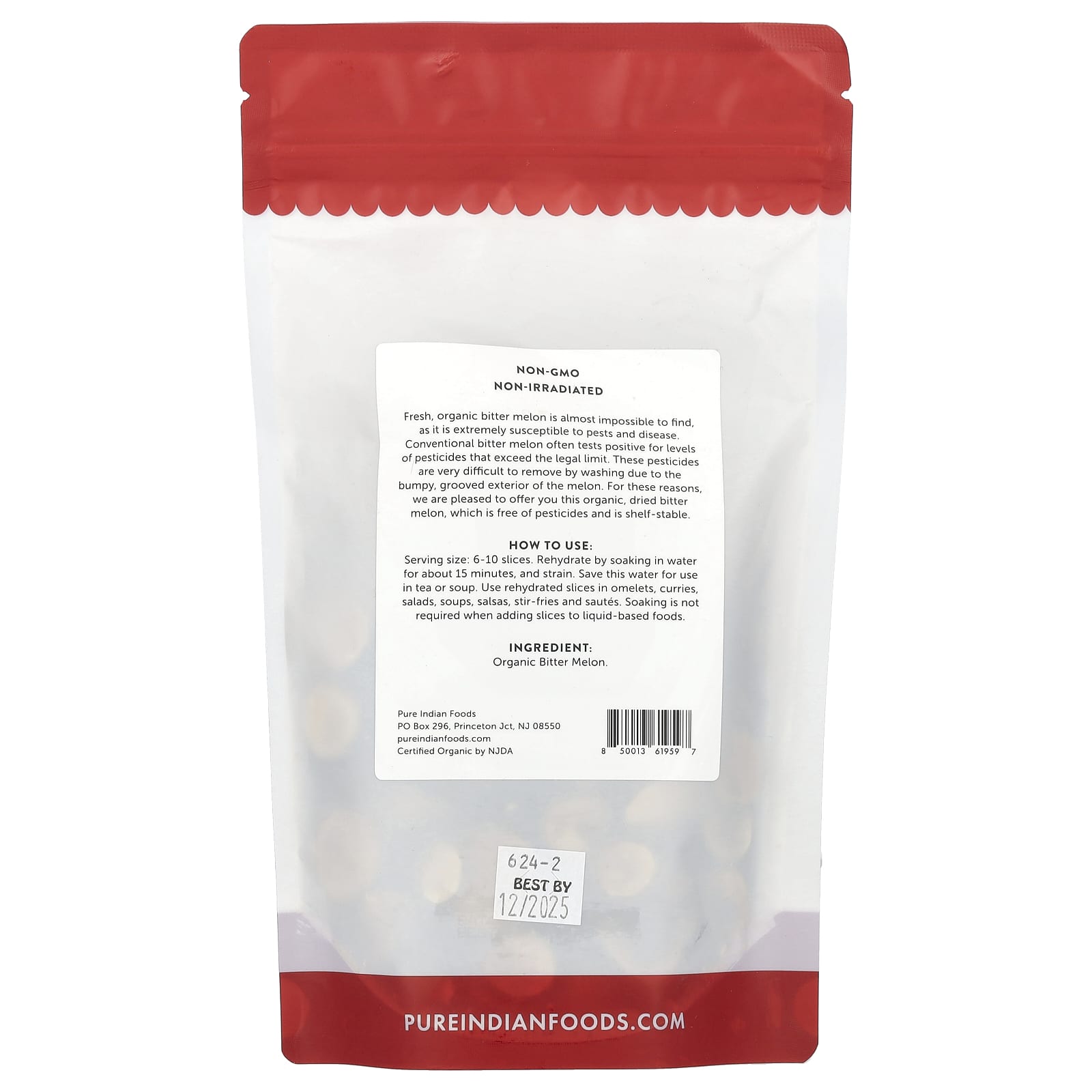 Свежую, органическую горькую дыню найти практически невозможно, поскольку она чрезвычайно восприимчива к вредителям и болезням. Обычная горькая дыня часто дает положительный результат на содержание пестицидов, превышающее допустимый предел. Эти пестициды очень трудно удалить путем мытья из-за неровной поверхности дыни. По этим причинам мы рады предложить вам эту органическую сушеную горькую дыню, которая не содержит пестицидов и подходит для длительного хранения.