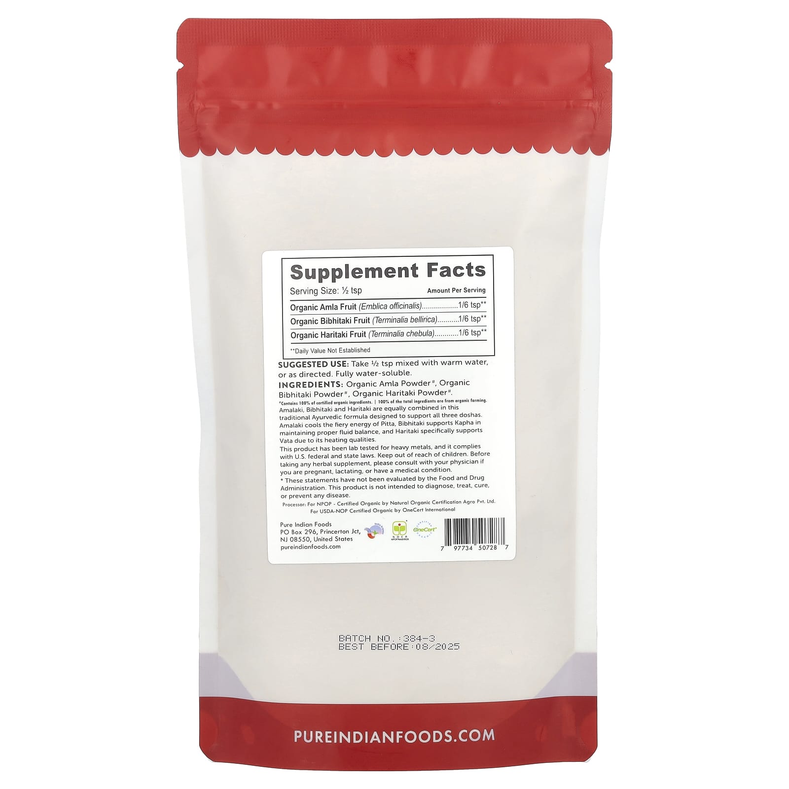 Амалаки, бибхитаки и харитаки в равной степени объединены в этой традиционной аюрведической формуле, разработанной для поддержки всех трех дош. Амалаки охлаждает огненную энергию Питты, Бибхитаки поддерживает Капху в поддержании надлежащего баланса жидкости, а Харитаки специально поддерживает Вату из-за ее согревающих свойств.