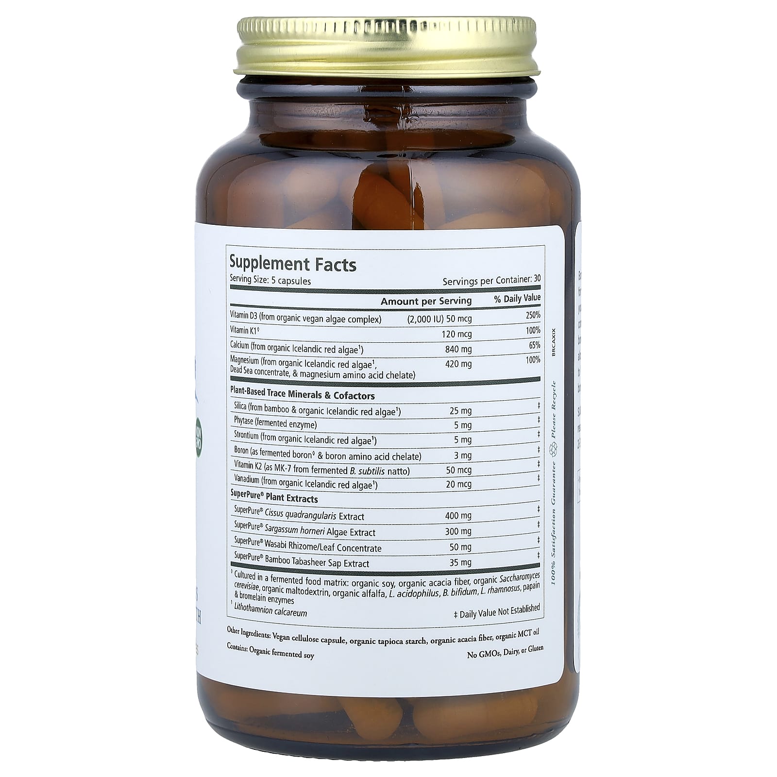 | Витамин D3 (из комплекса органических веганских водорослей) | (2000 МЕ) 50 мкг | 250% |