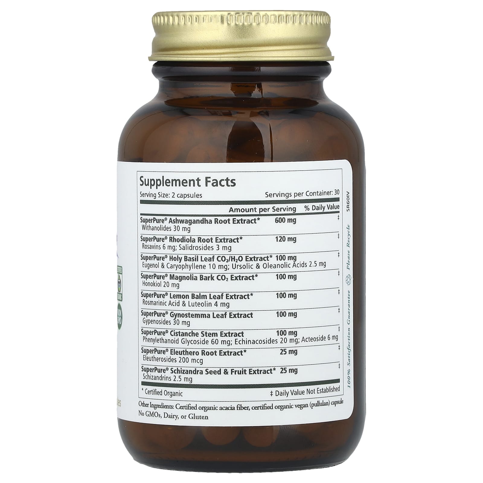 - Содержит органические экстракты ашваганды и родиолы