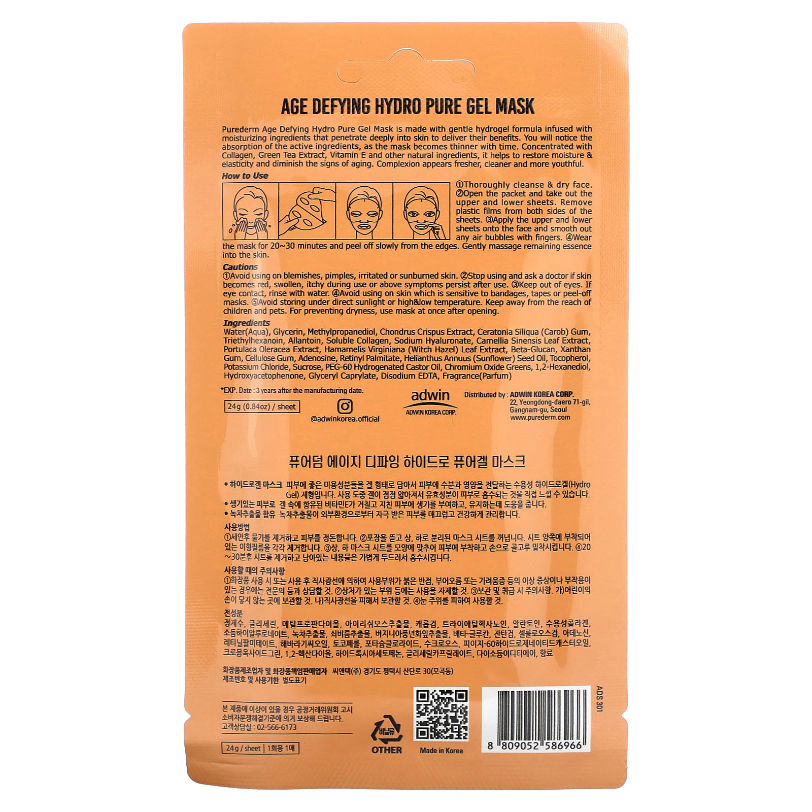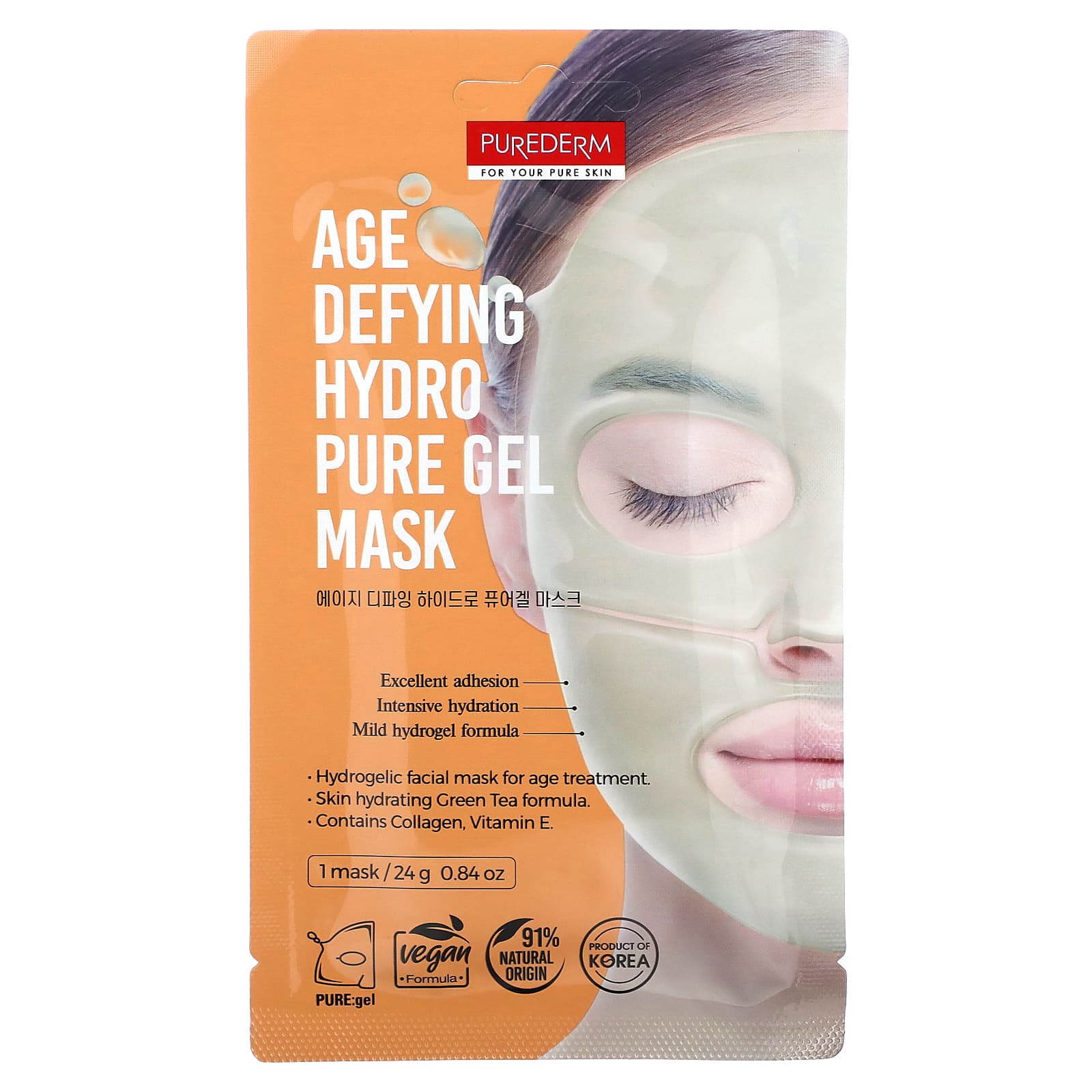 Гелевая маска Purederm Age Defying Hydro Pure создана на основе нежной гидрогелевой формулы, содержащей увлажняющие ингредиенты, которые глубоко проникают в кожу, обеспечивая свои полезные свойства. Вы заметите впитывание активных ингредиентов, поскольку со временем маска становится тоньше. Содержит коллаген, экстракт зеленого чая, витамин Е и другие натуральные ингредиенты, помогает восстановить увлажненность и эластичность, а также уменьшить признаки старения. Цвет лица выглядит более свежим, чистым и молодым.