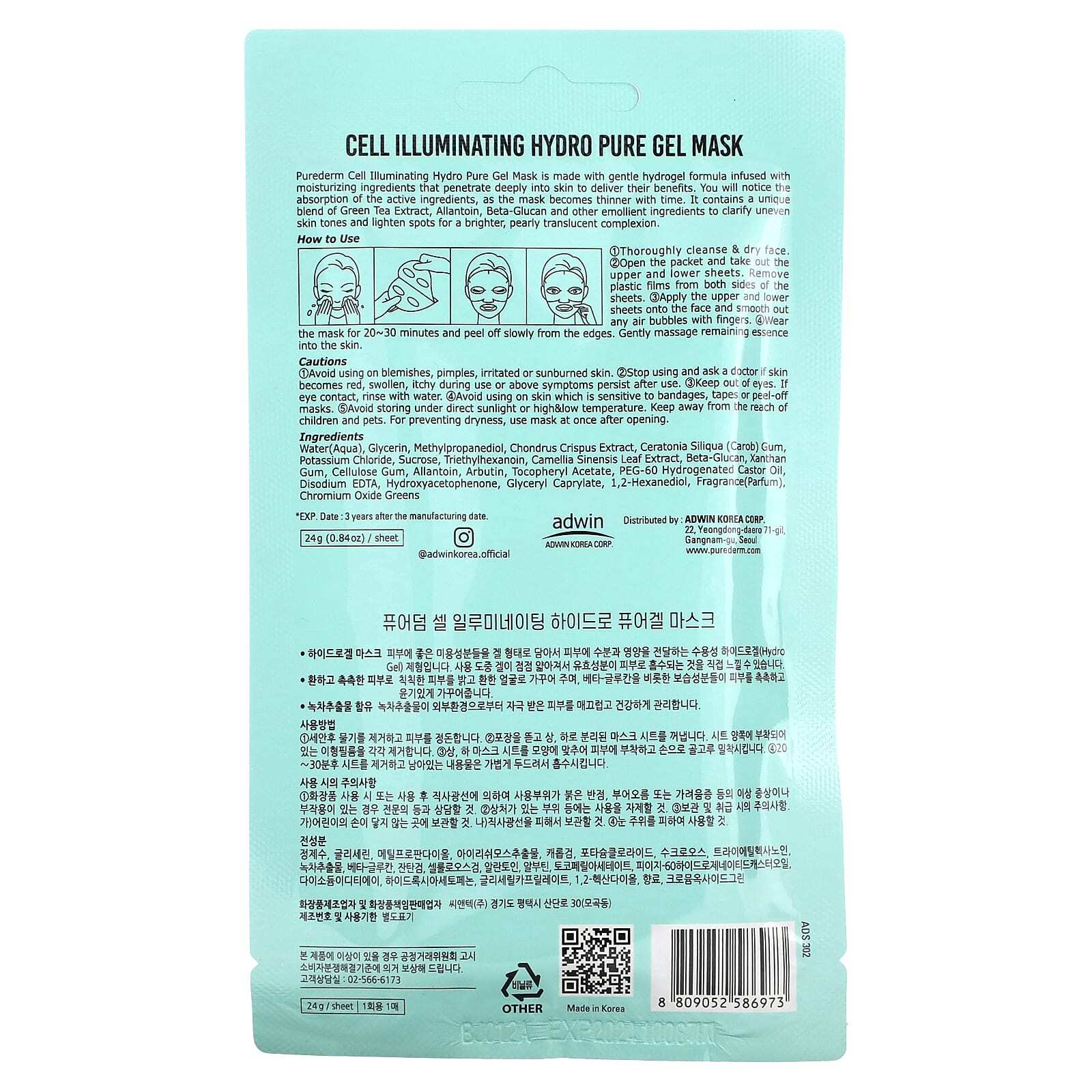 Гелевая маска Purederm Cell Illuminating Hydro Pure изготовлена на основе нежной гидрогелевой формулы, содержащей увлажняющие ингредиенты, которые глубоко проникают в кожу, обеспечивая свои преимущества. Вы заметите впитывание активных ингредиентов, поскольку со временем маска становится тоньше. Он содержит уникальную смесь экстракта зеленого чая, аллантоина, бета-глюкана и других смягчающих ингредиентов, которые выравнивают неровный тон кожи и осветляют пятна, придавая коже сияющий, жемчужно-полупрозрачный цвет.