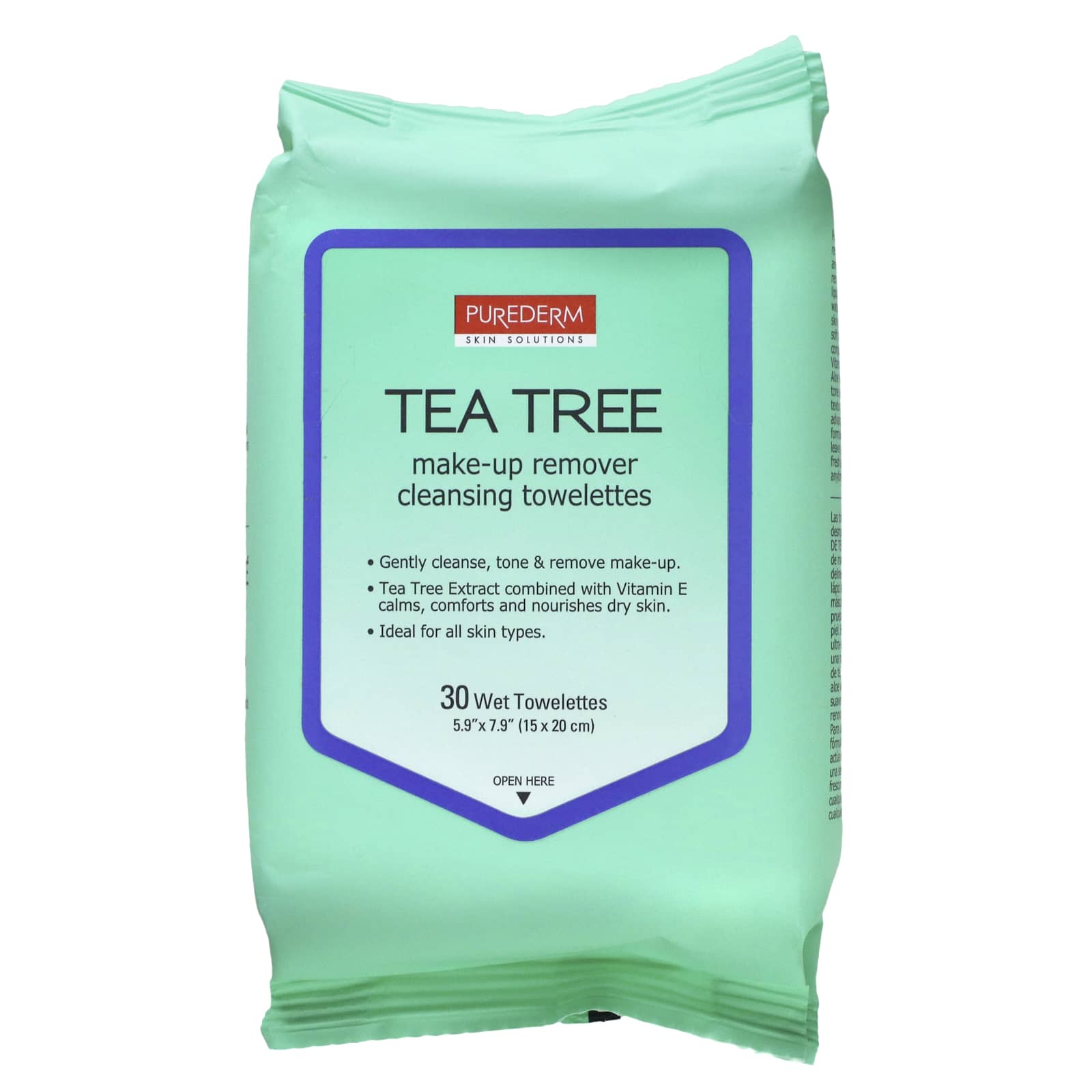 Очищающие салфетки Purederm Tea Tree нежно и эффективно удаляют подводку, тени, помаду, румяна и даже водостойкую тушь, не раздражая кожу. Эти сверхмягкие салфетки содержат комплексную смесь чайного дерева, витамина Е, зеленого чая и алоэ вера, которые нежно очищают, тонизируют и восстанавливают текстуру кожи. Наша улучшенная увлажненная формула работает за несколько секунд, чтобы вы чувствовали себя гладкими, свежими и увлажненными - в любое время и в любом месте!