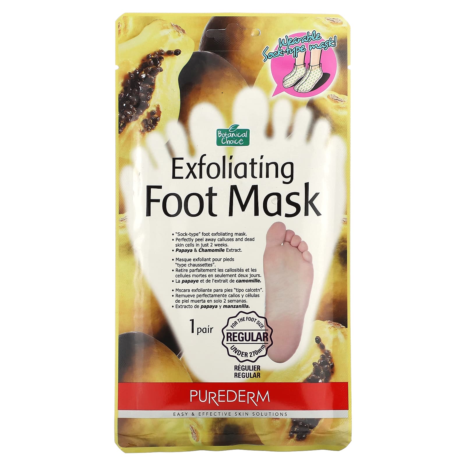 Отшелушивающая маска для ног Purederm Botanical Choice ™ - это отшелушивающее средство для ног в комплекте с парой носимых маскировочных полотен. Наденьте маску, как носки. Со временем он удаляет все мозоли, заметно разглаживая кожу ног в течение 2 недель. Экстракт папайи, лимона, яблока, апельсина и другие натуральные растительные экстракты удаляют мозоли, а экстракт ромашки успокаивает только что отшелушенную кожу.