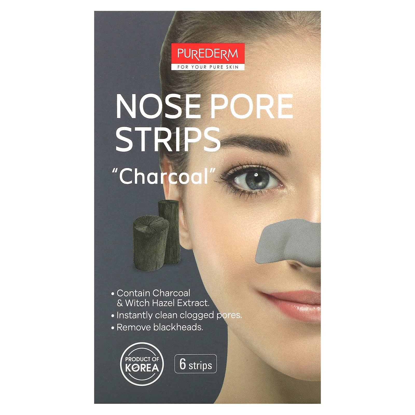 Purederm, Полоски для пор в носу, древесный уголь`` 6 полосок