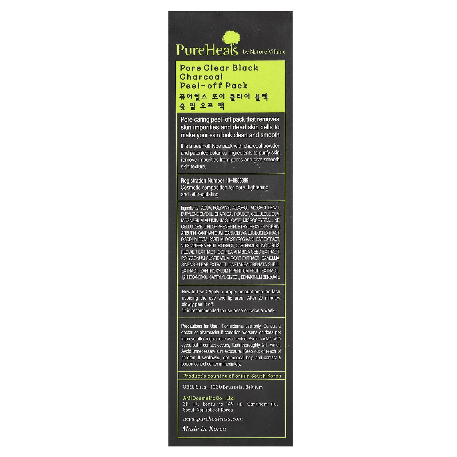 Вода, поливиниловый спирт, денатурированный спирт, бутиленгликоль, порошок из древесного угля, целлюлозная камедь, алюмосиликат магния, микрокристаллическая целлюлоза, хлорфенезин, этилгексилглицерин, арбутин, ксантановая камедь, экстракт трутовика лакированного (Ganoderma lucidum), двунатриевая ЭДТК, отдушка, экстракт листьев хурмы восточной (Diospyros kaki), экстракт плодов винограда (Vitis vinifera), экстракт цветков сафлора (Carthamus tinctorius), экстракт семян кофе арабика (Coffea arabica), экстракт корня рейнутрии японской (Polygonum cuspidatum), экстракт листьев зеленого чая (Camellia sinensis), экстракт скорлупы кастанеи (Castanea crenata), экстракт сычуаньского перца (Zanthoxylum piperitum), 1,2-гександиол, каприлилгликоль, денатония бензоат.
