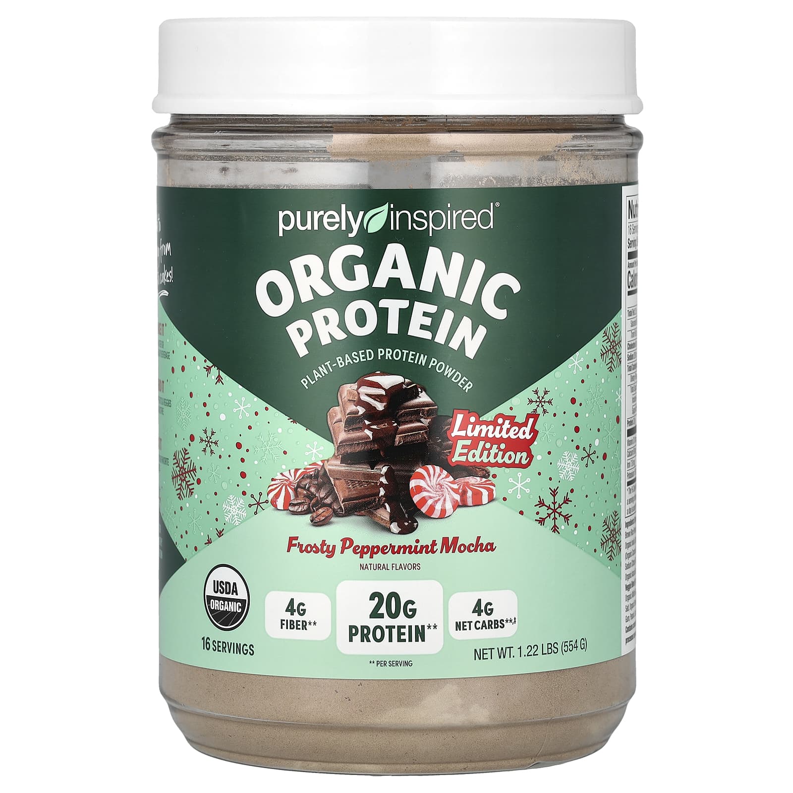 Органический протеин Purely Inspired® содержит 20 г растительного белка в одной порции, примерно столько же пищевой клетчатки, что и яблоко, и примерно столько же железа, что и одна чашка приготовленной чечевицы. Это простое средство, которое поможет вам расти каждый день, вам понравятся его вкус и полезные свойства, содержащиеся в каждой мерной ложке.