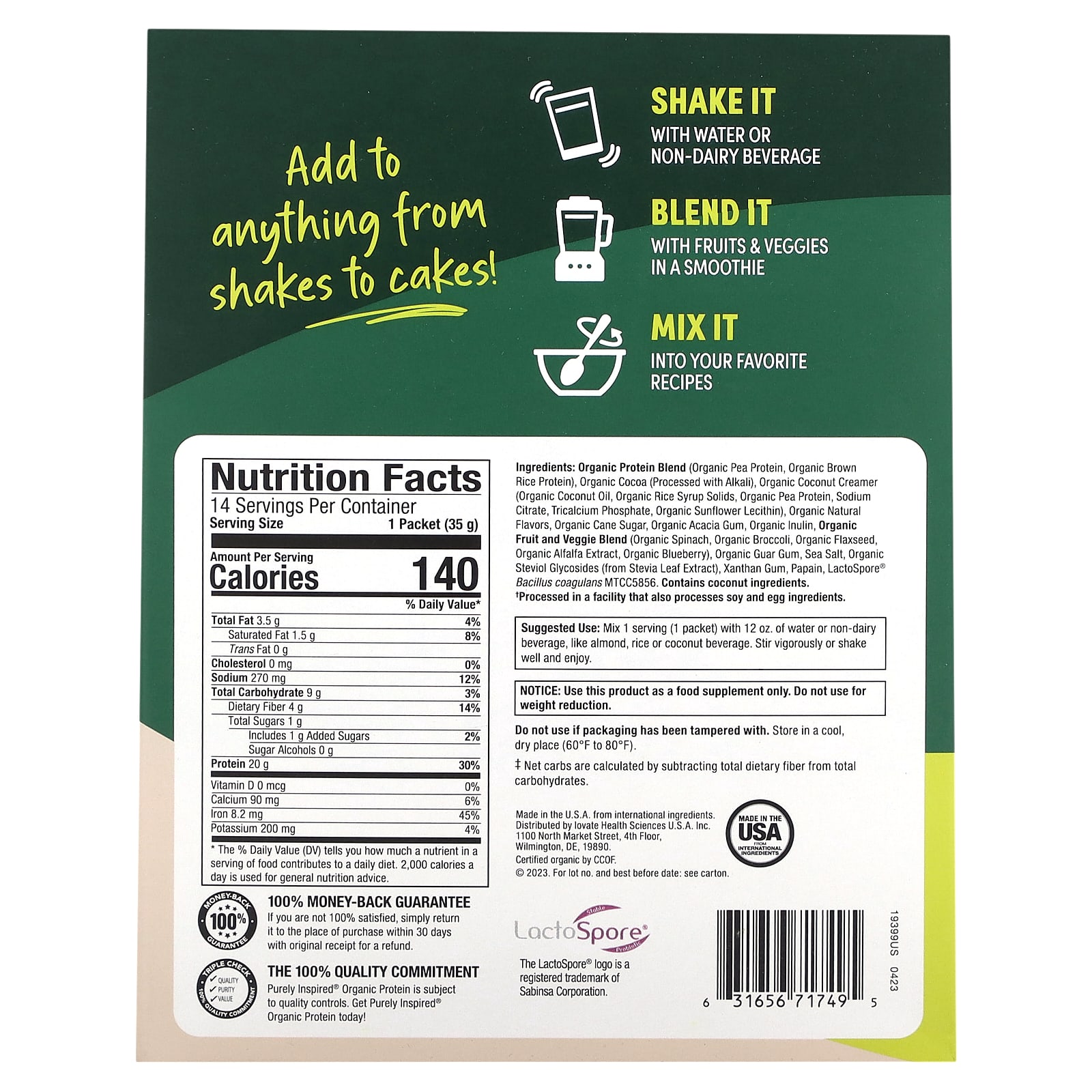 Purely Inspired, органический протеиновый порошок на растительной основе, со вкусом шоколада, 14 порционных пакетиков по 35 г (1,23 унции)