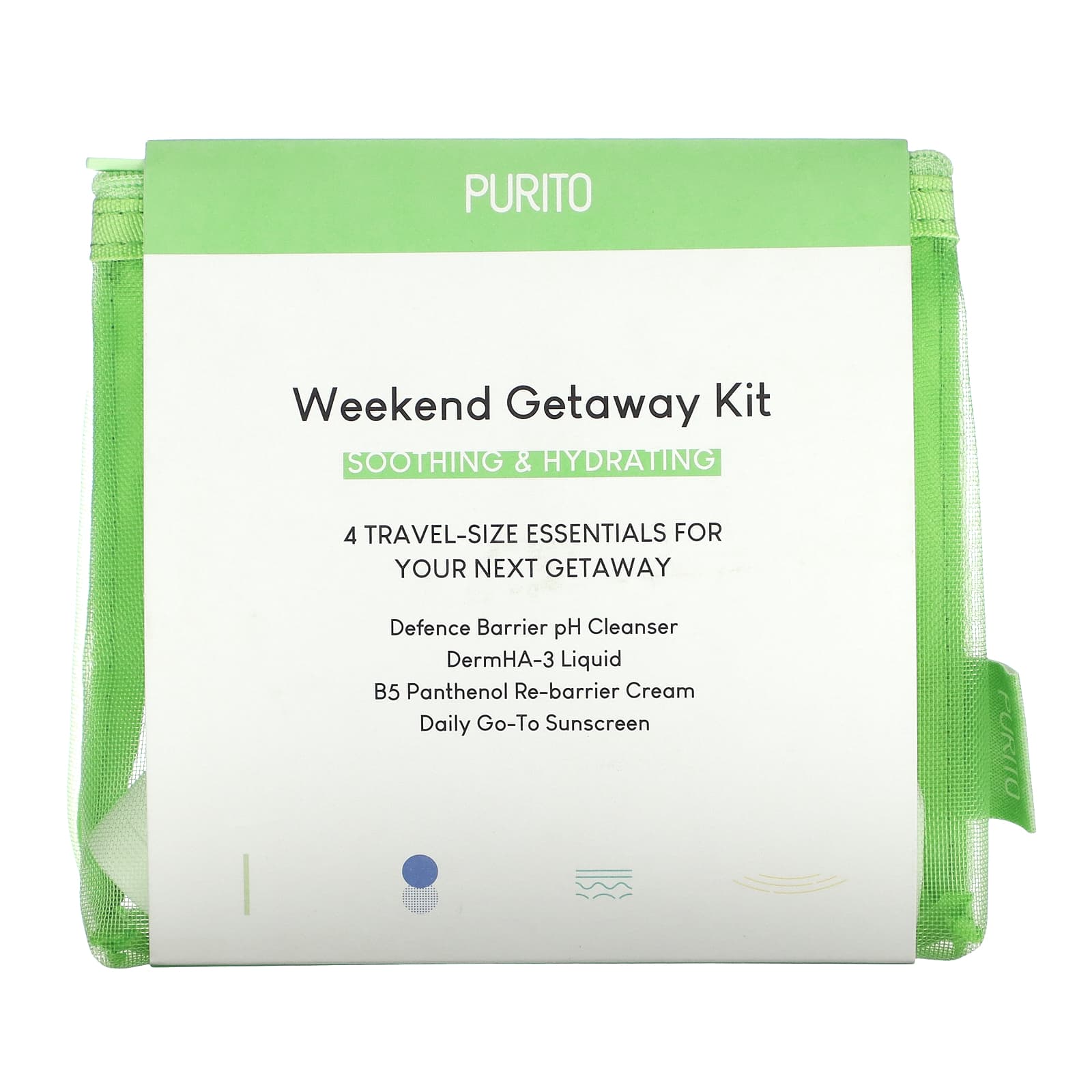 Weekend Getaway Kit содержит четыре вида миниатюрных предметов первой необходимости. От очищения до базового ухода за кожей - успокаивает уставшую кожу после долгого путешествия.