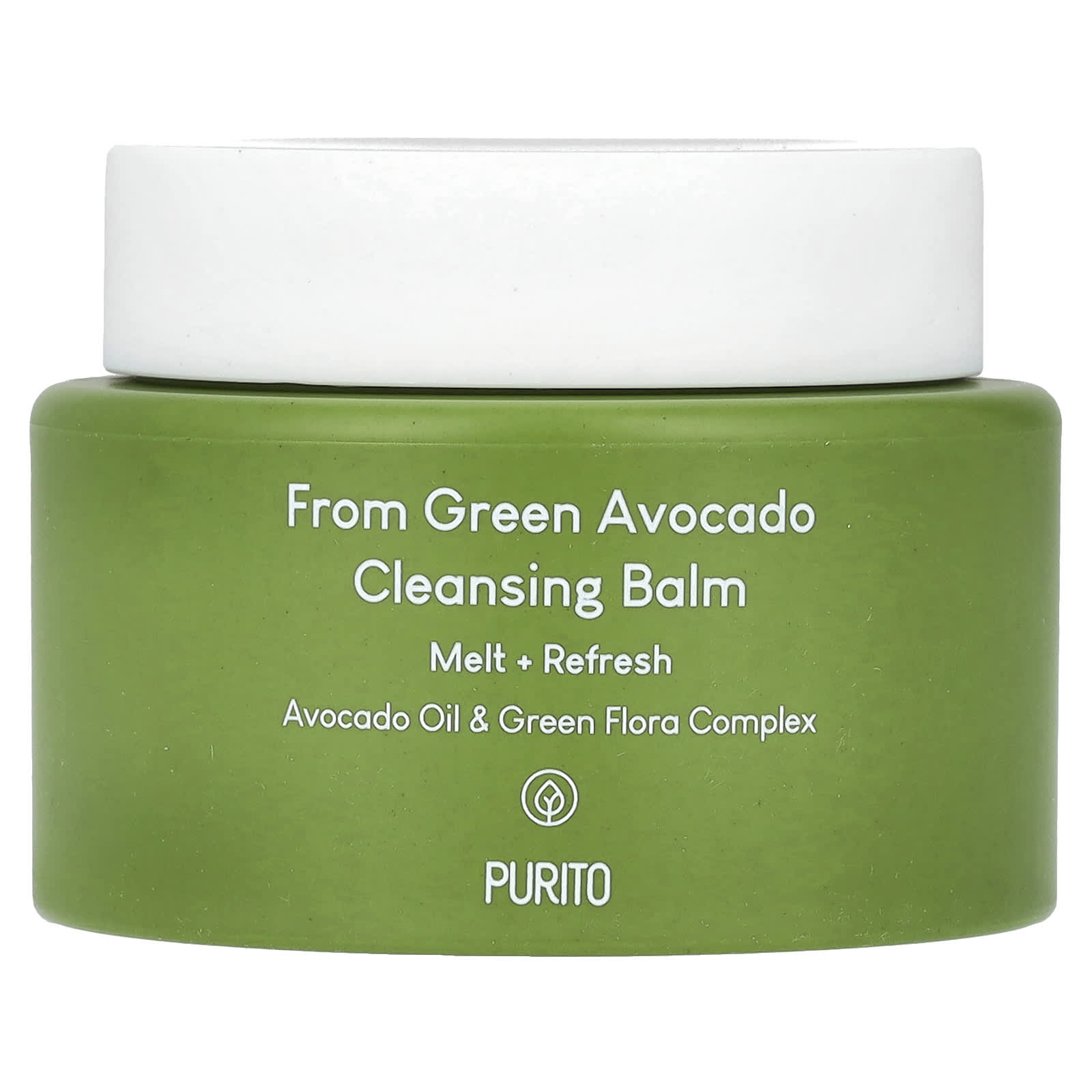 Масляная текстура очищающего бальзама From Green Avocado с насыщенной зеленью плавно ложится на кожу и мягко растворяет макияж, солнцезащитный крем и другие загрязнения.