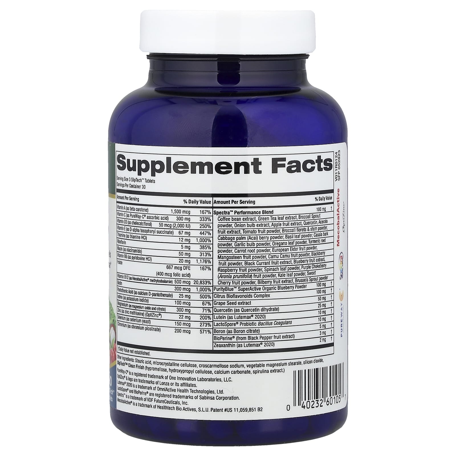| Размер порции: 3 таблетки SlipTech ™ | ||