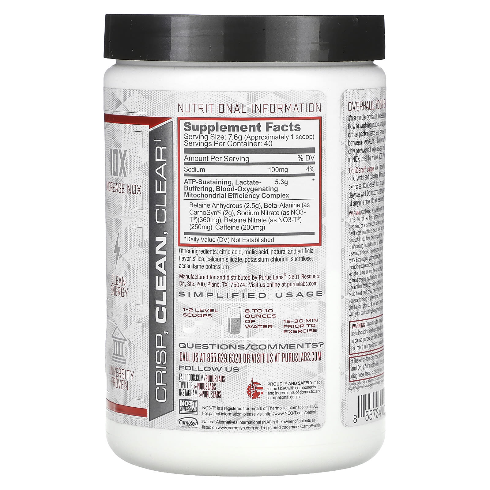 Безводный бетаин (2,5 г), бета-аланин (в виде CarnoSyn®) (2 г), нитрат натрия (в виде NO3-T®) (360 мг), нитрат бетаина (в виде NO3-T®) (250 мг), кофеин (200 мг)