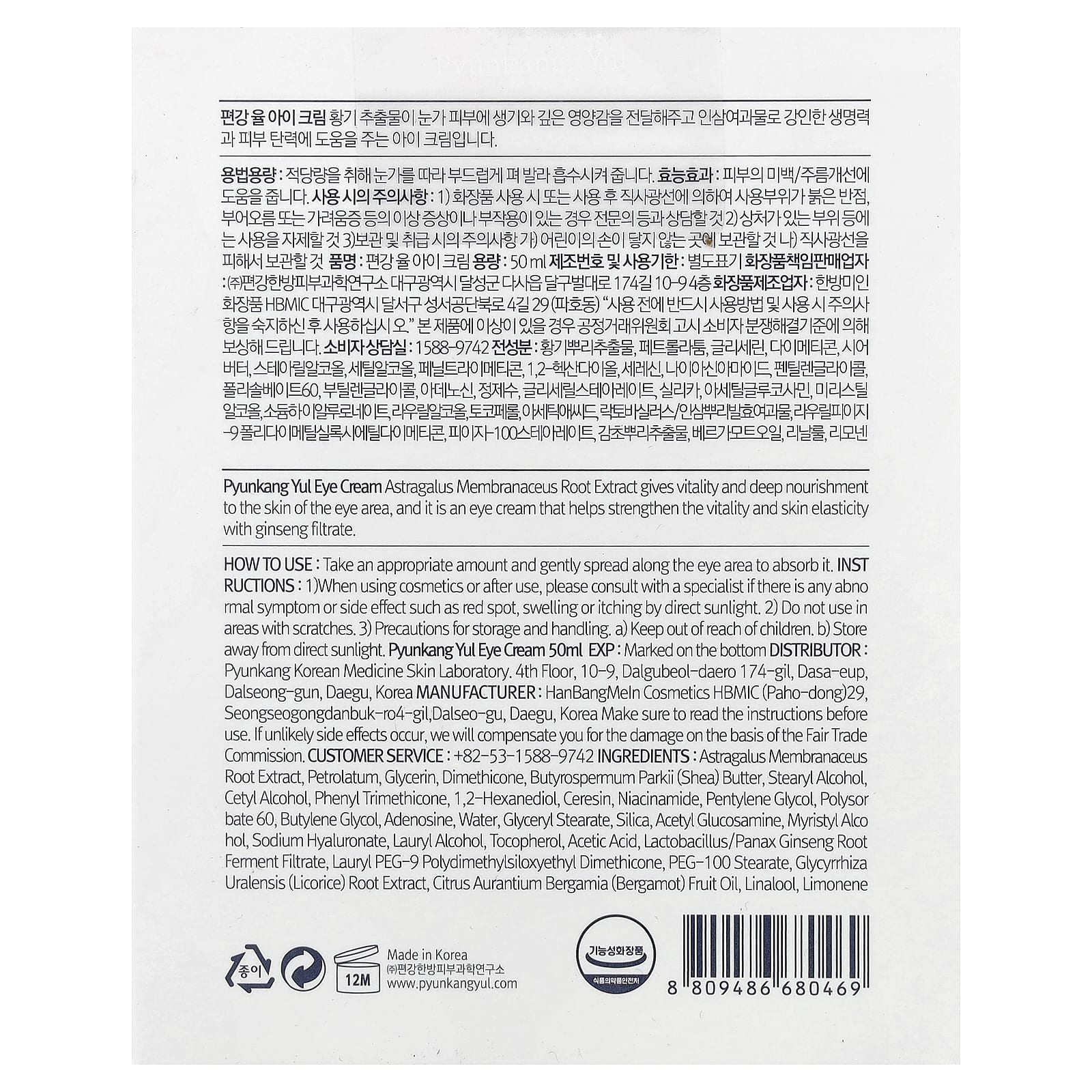 Крем для области вокруг глаз Pyunkang Yul с экстрактом корня астрагала перепончатого (Astragalus membranaceus) придает жизненную силу и глубокое питание коже области вокруг глаз. Этот крем для области вокруг глаз помогает укрепить жизненную силу и повысить эластичность кожи с помощью фильтрата женьшеня.