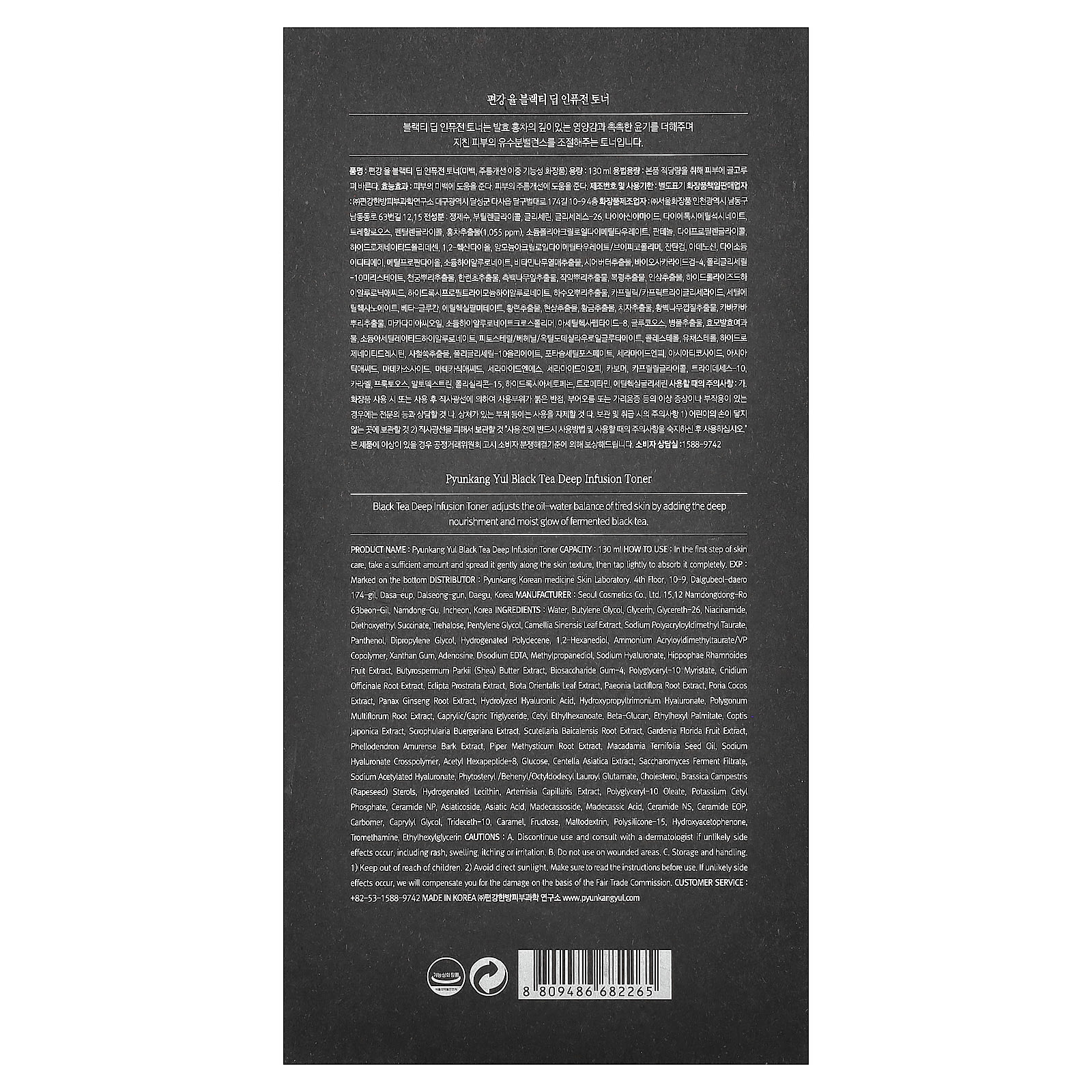 Тоник для глубокого вливания с черным чаем регулирует водно-масляный баланс уставшей кожи, придавая ей глубокое питание и увлажняющее сияние, как в случае с ферментированным черным чаем.