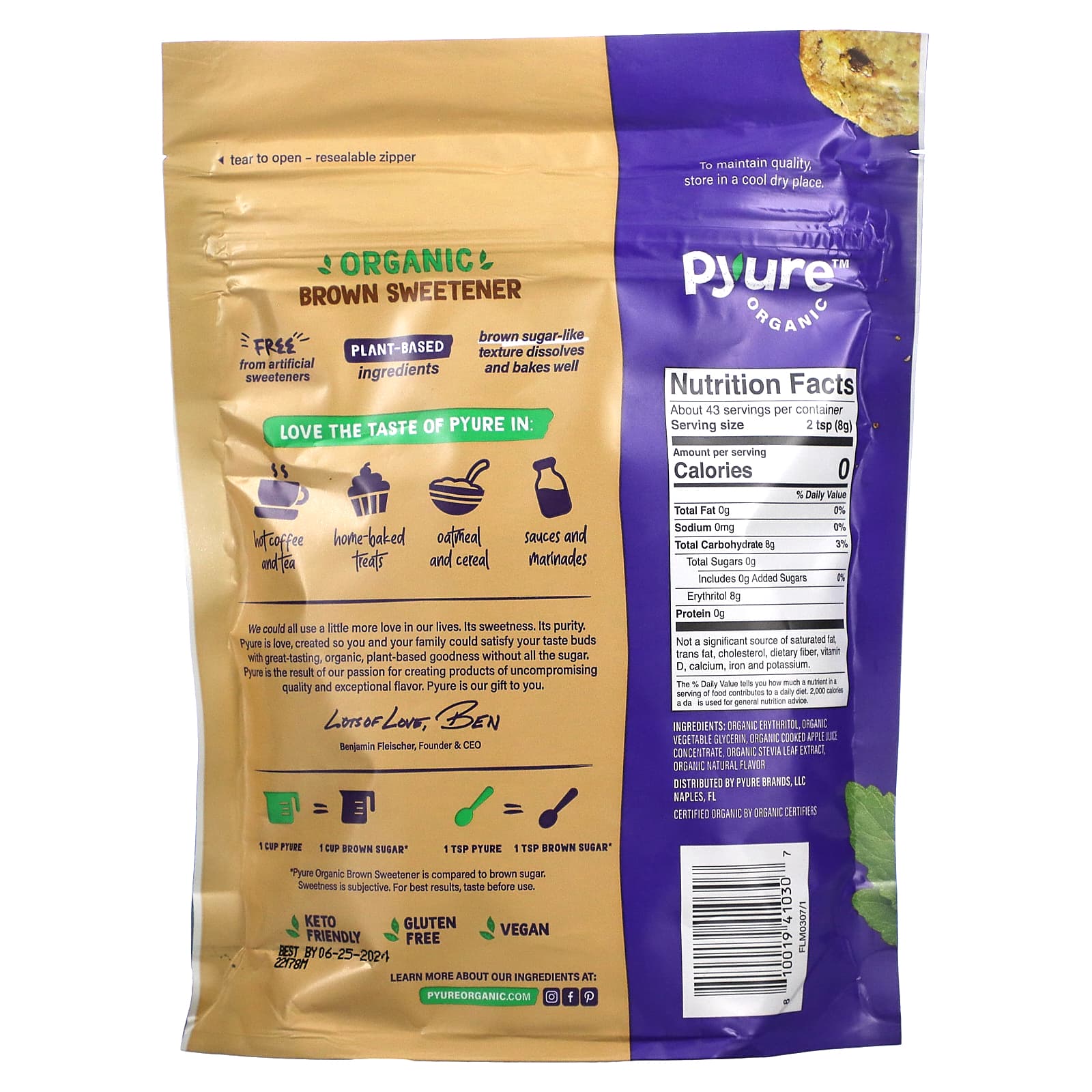 * Органический коричневый подсластитель Pyure сравнивают с коричневым сахаром. Сладость субъективна. Для достижения наилучшего результата попробуйте перед использованием.