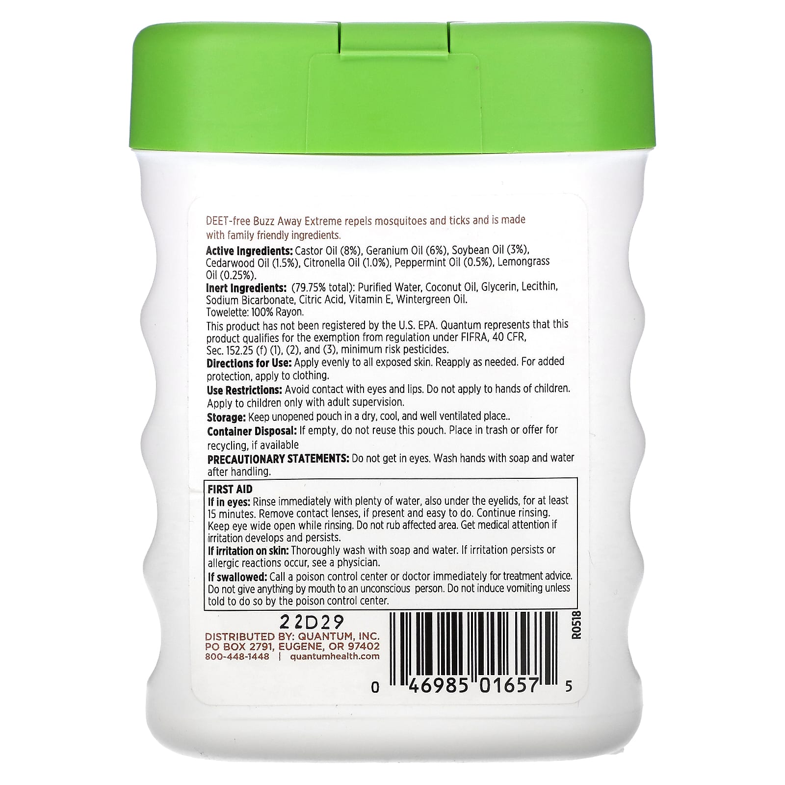 Buzz Away Extreme не содержит ДЭТ, отпугивает комаров и клещей и производится из ингредиентов, подходящих для всей семьи.