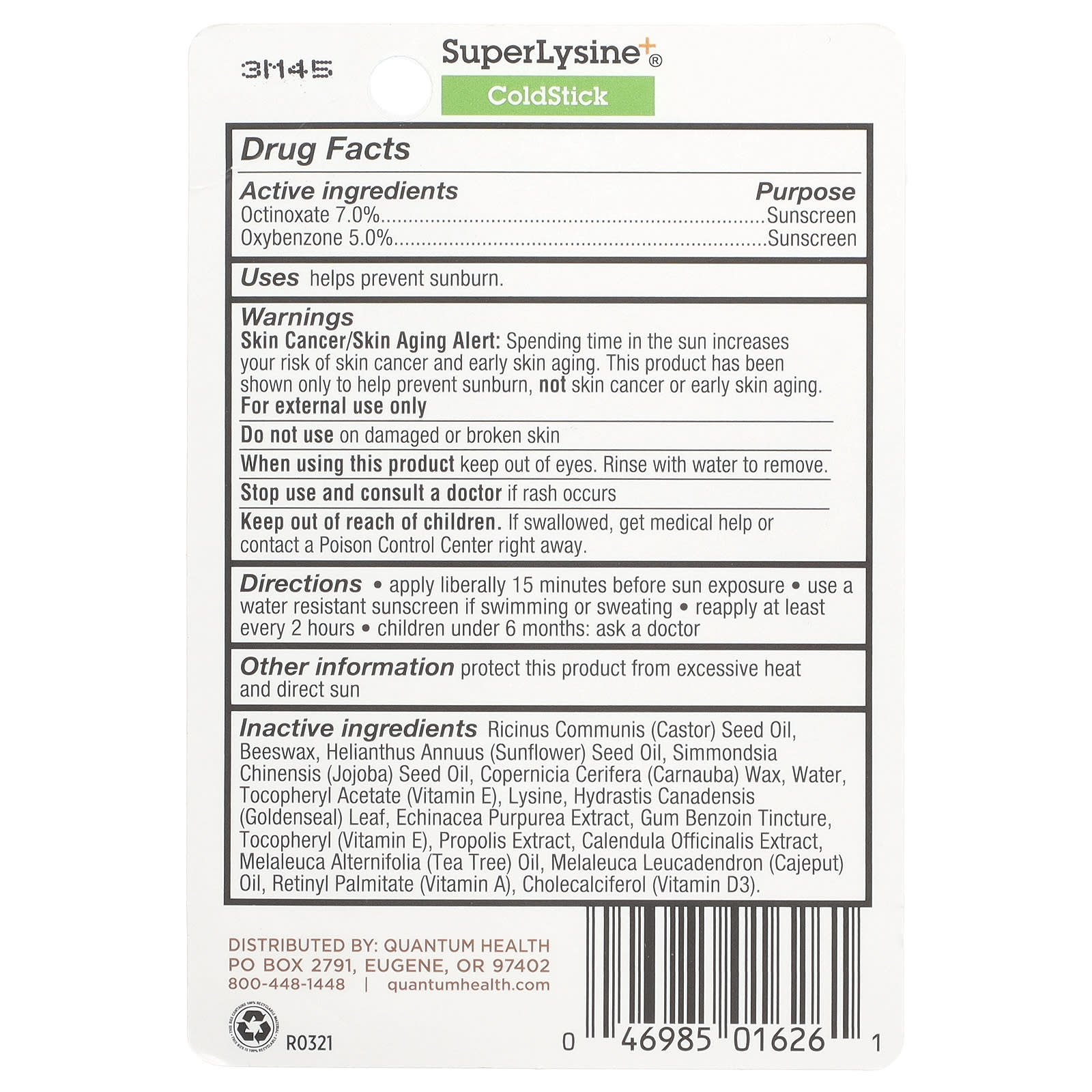 | Касторовое масло (Ricinus communis), пчелиный воск, подсолнечное масло (Helianthus annuus), масло семян жожоба (Simmondsia chinensis), воск карнаубского (Copernicia cerifera), вода, токоферилацетат (витамин Е), лизин, лист гидрастиса канадского (Hydrastis canadensis) , экстракт эхинацеи пурпурной, настойка бензоина камеди, токоферил (витамин Е), экстракт прополиса, экстракт календулы лекарственной, масло чайного дерева (Melaleuca alternifolia), масло каепутовой (Melaleuca leucadendron), ретинилпальмитат (витамин А), холекальциферол (витамин D3). | |