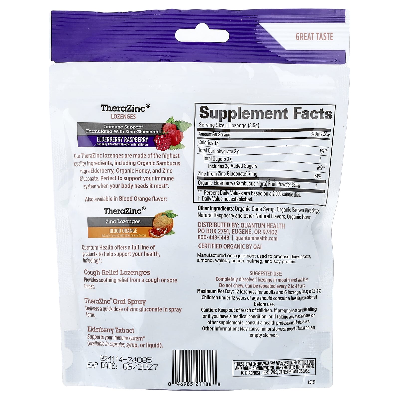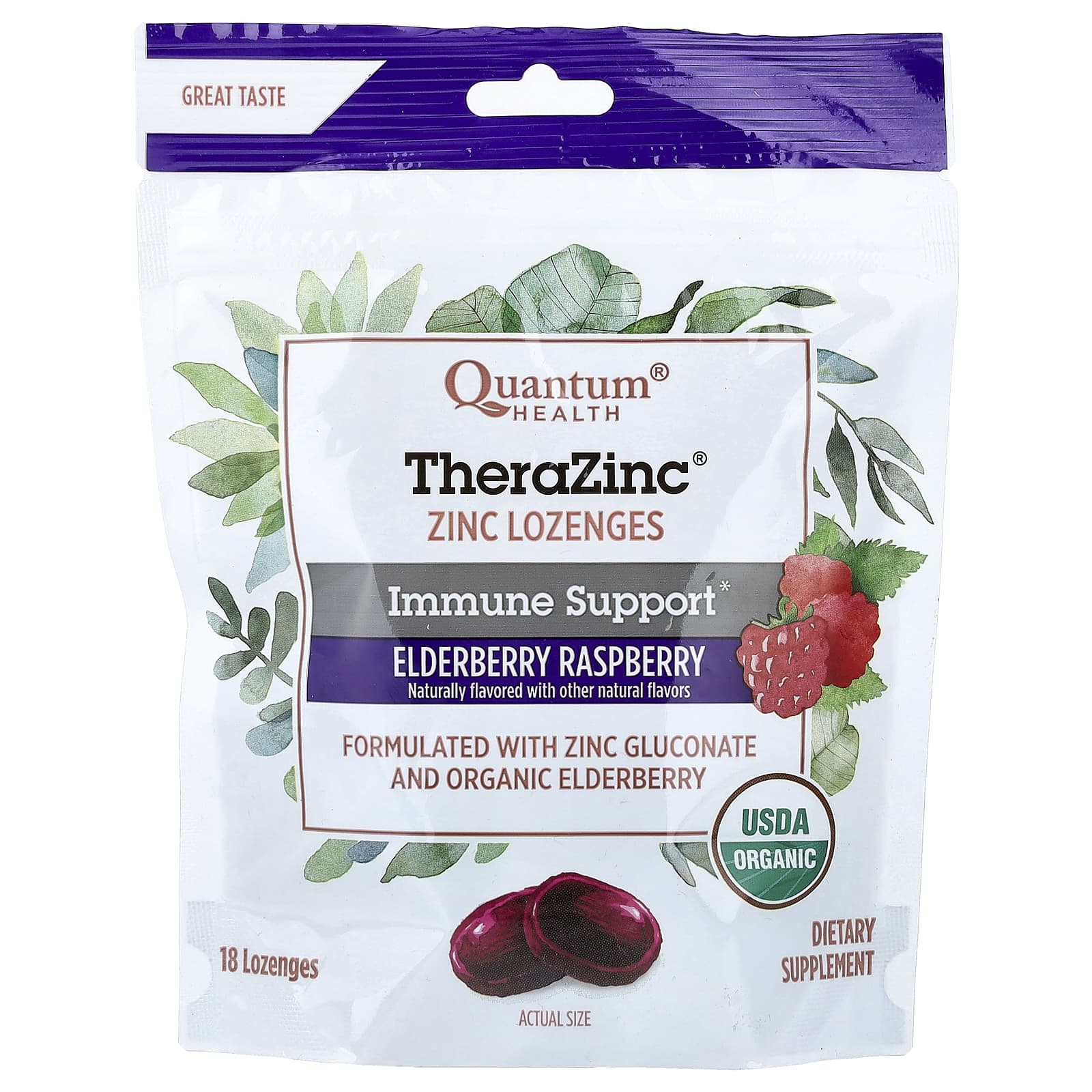 Quantum Health, TheraZinc®, леденцы с цинком, бузина и малина, 18 леденцов