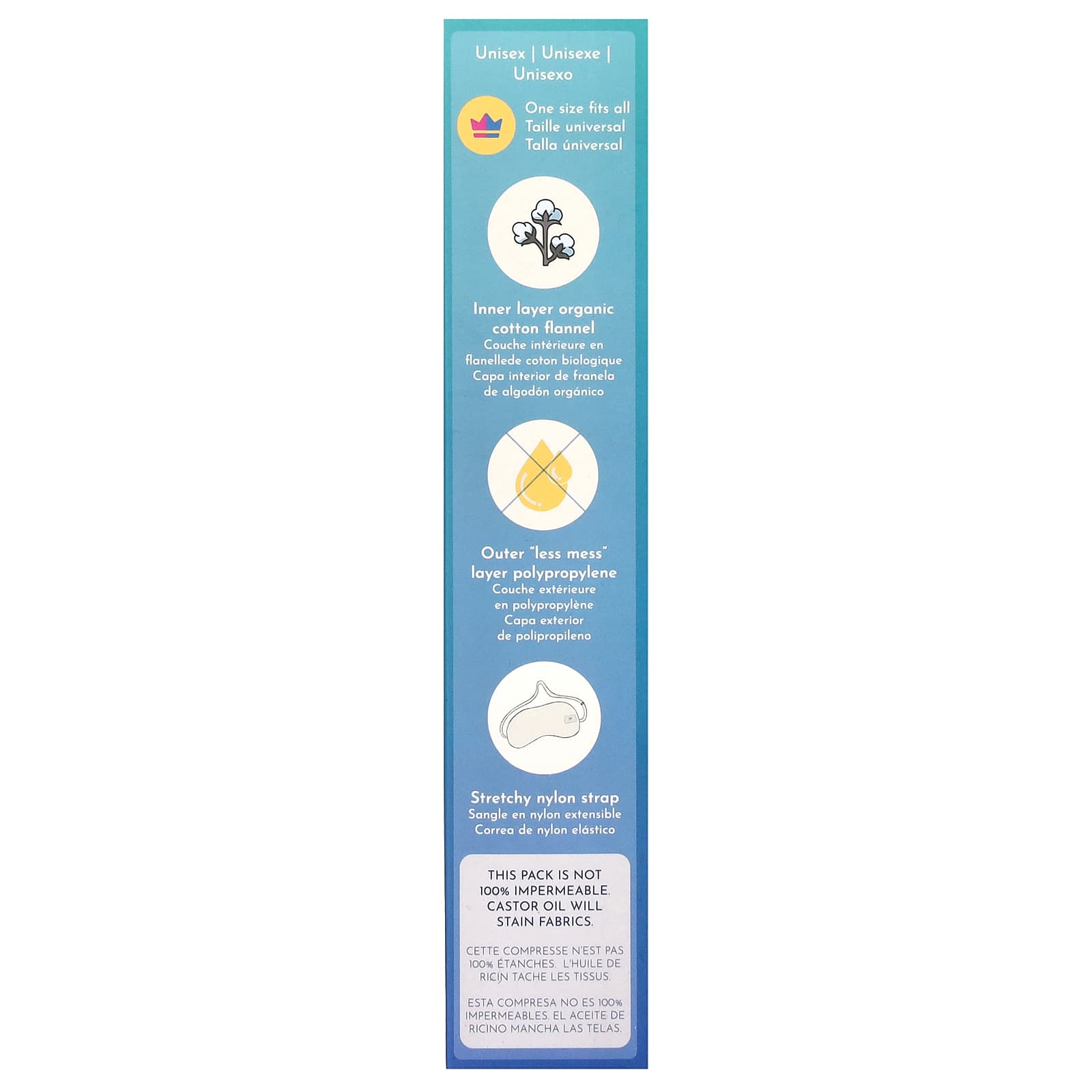 Этот пакет с касторовым маслом имеет естественный жизненный цикл и со временем обесцвечивается, портится и насыщается. Ремни - это опасность удушья. Хранить в недоступном для детей месте. Не использовать во время беременности. Всегда консультируйтесь со своим лечащим врачом, чтобы убедиться, что этот или любой другой метод лечения подходит именно вам.