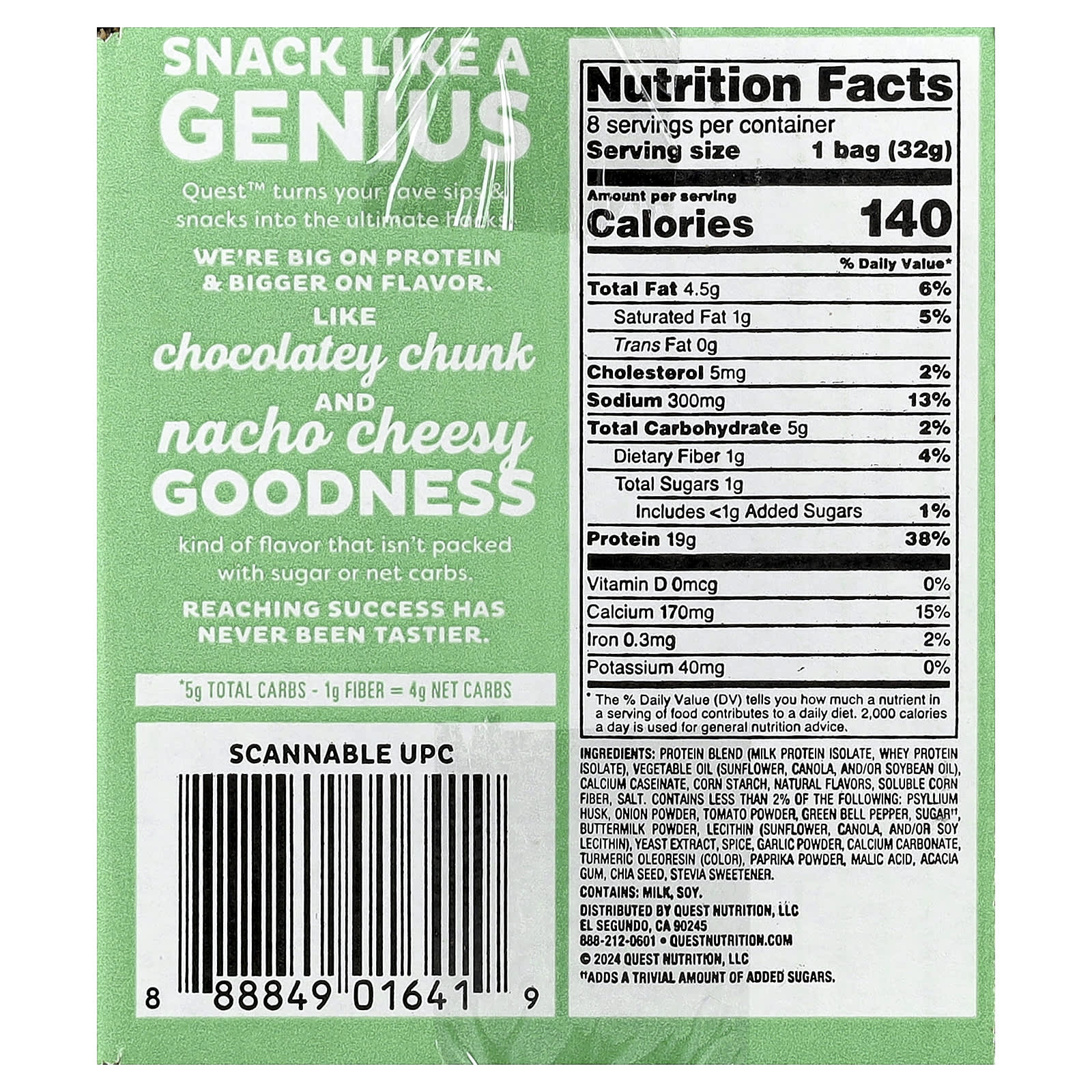 Quest Nutrition, Протеиновые чипсы по типу тортильи, сальса-верде, 8 пакетиков по 32 г (1,1 унции)