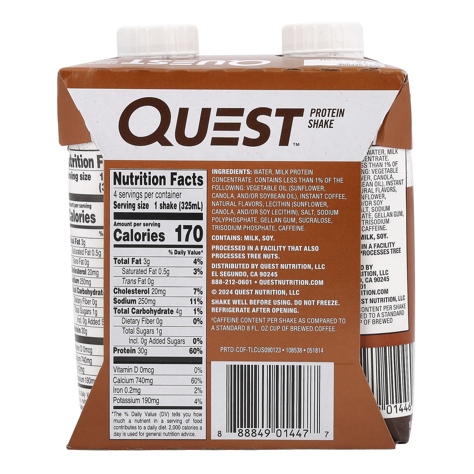 Вода, концентрат молочного белка. Содержит менее 1% следующих компонентов: масло растительное (подсолнечное, канолы, и / или соевое масло), растворимый кофе, натуральные ароматизаторы, лецитин (из подсолнечника, канолы, сои), соль, полифосфат натрия, геллановая камедь, сукралоза, тринатрий фосфат, кофеин.