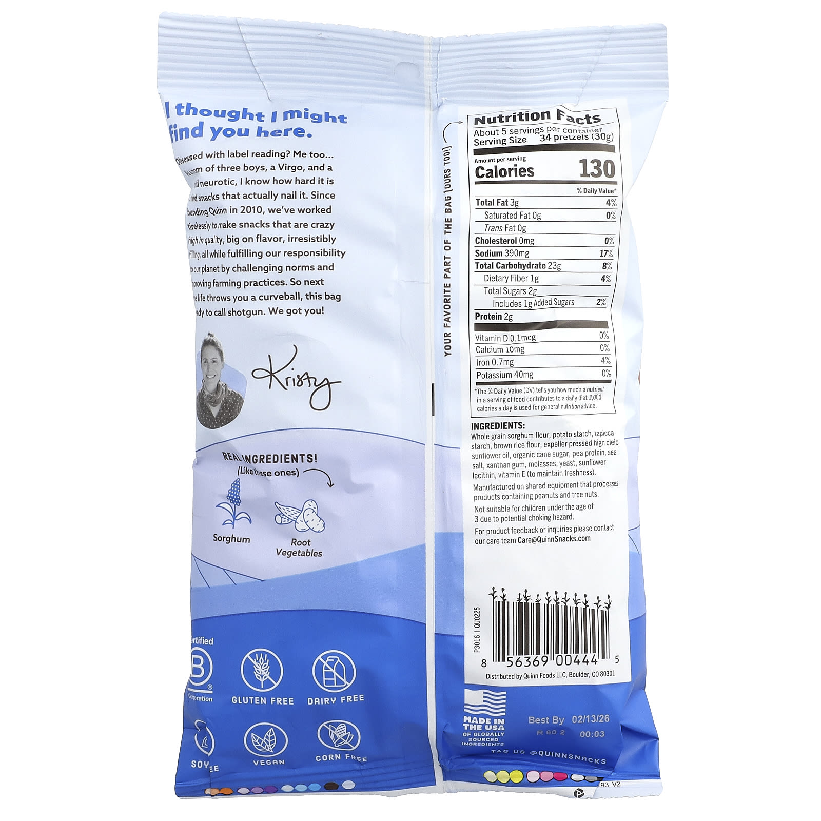 Нравится читать этикетки? Я тоже... Как мама троих мальчиков, Дева и сертифицированный невротик, я знаю, как сложно найти снеки, которые действительно помогают. С момента основания компании Quinn в 2010 году мы неустанно работаем над созданием снеков, которые являются невероятно качественными, насыщенными и невероятно сытными. При этом мы выполняем свой долг перед нашей платформой, внедряя стандарты и методы ведения сельского хозяйства. Так что в следующий раз, когда жизнь отправит вас в непредвиденные ситуации, этот мешочек будет вам по вкусу. Мы вас поняли!