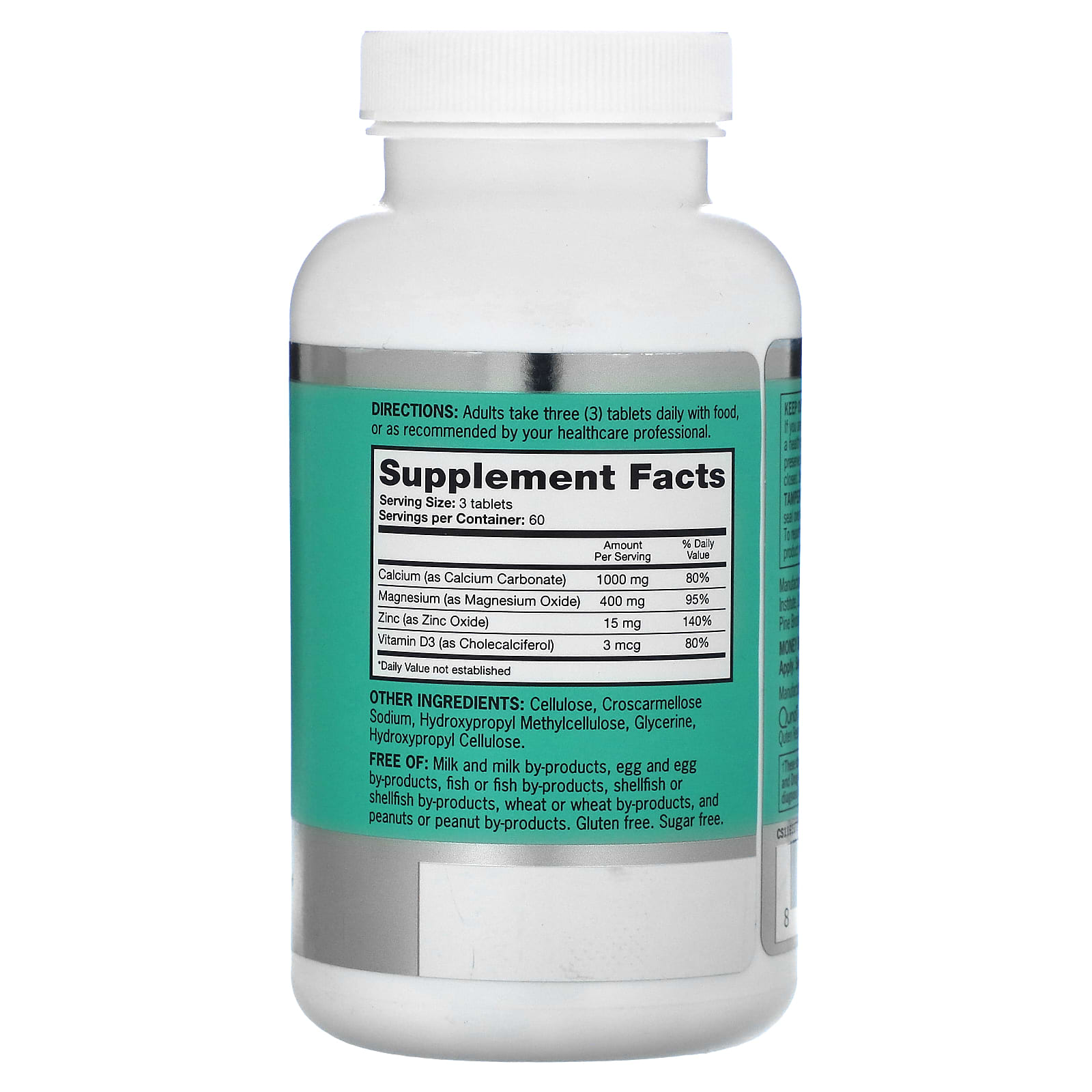 | Кальций (в виде карбоната кальция) | 1000 мг | 80% |