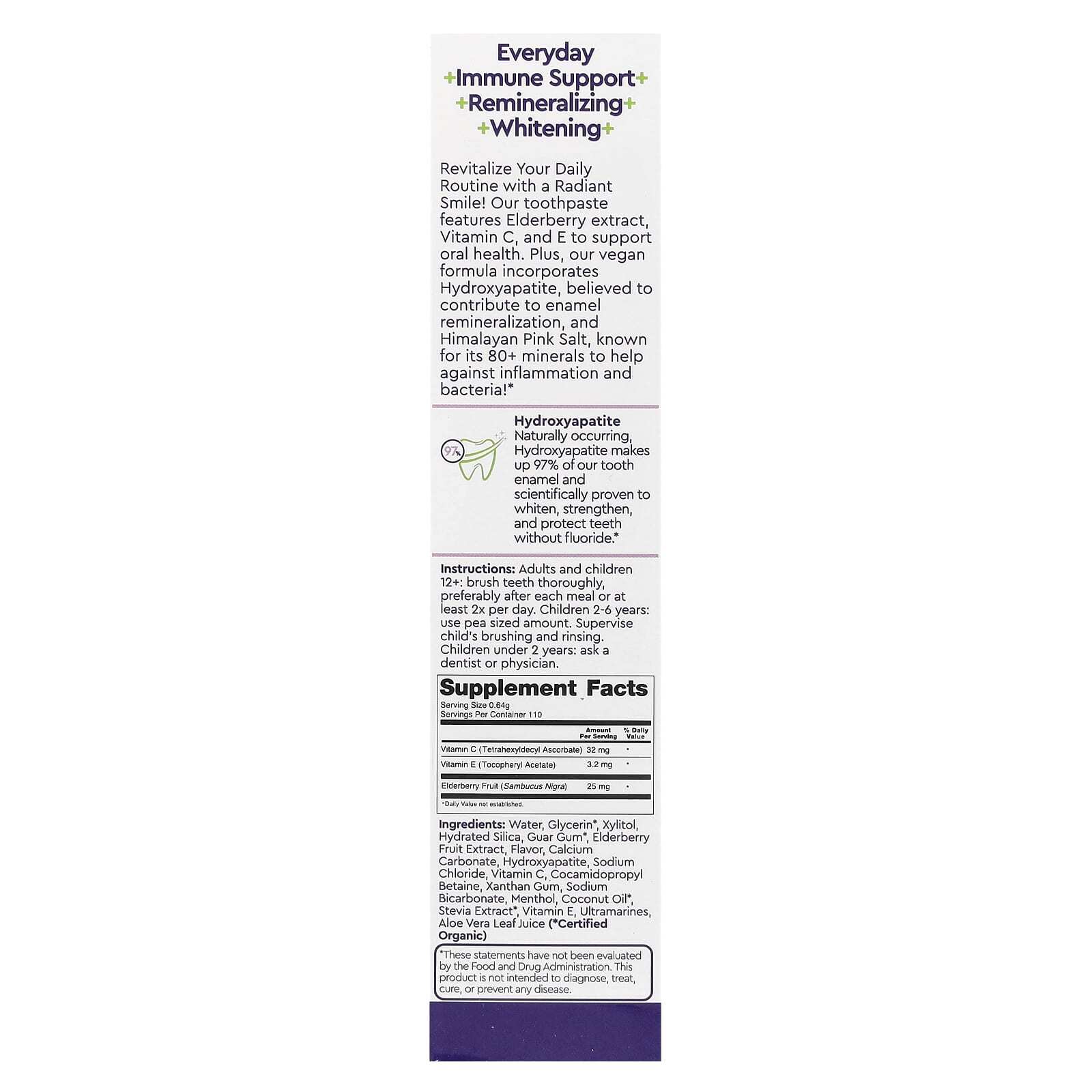 Оживите свой распорядок дня с сияющей улыбкой! Наша зубная паста содержит экстракт бузины, витамины С и Е для поддержания здоровья полости рта. Кроме того, наша веганская формула включает гидроксиапатит, который, как считается, способствует реминерализации эмали, и гималайскую розовую соль, известную своими 80+ минералами, которые помогают против воспалений и бактерий!