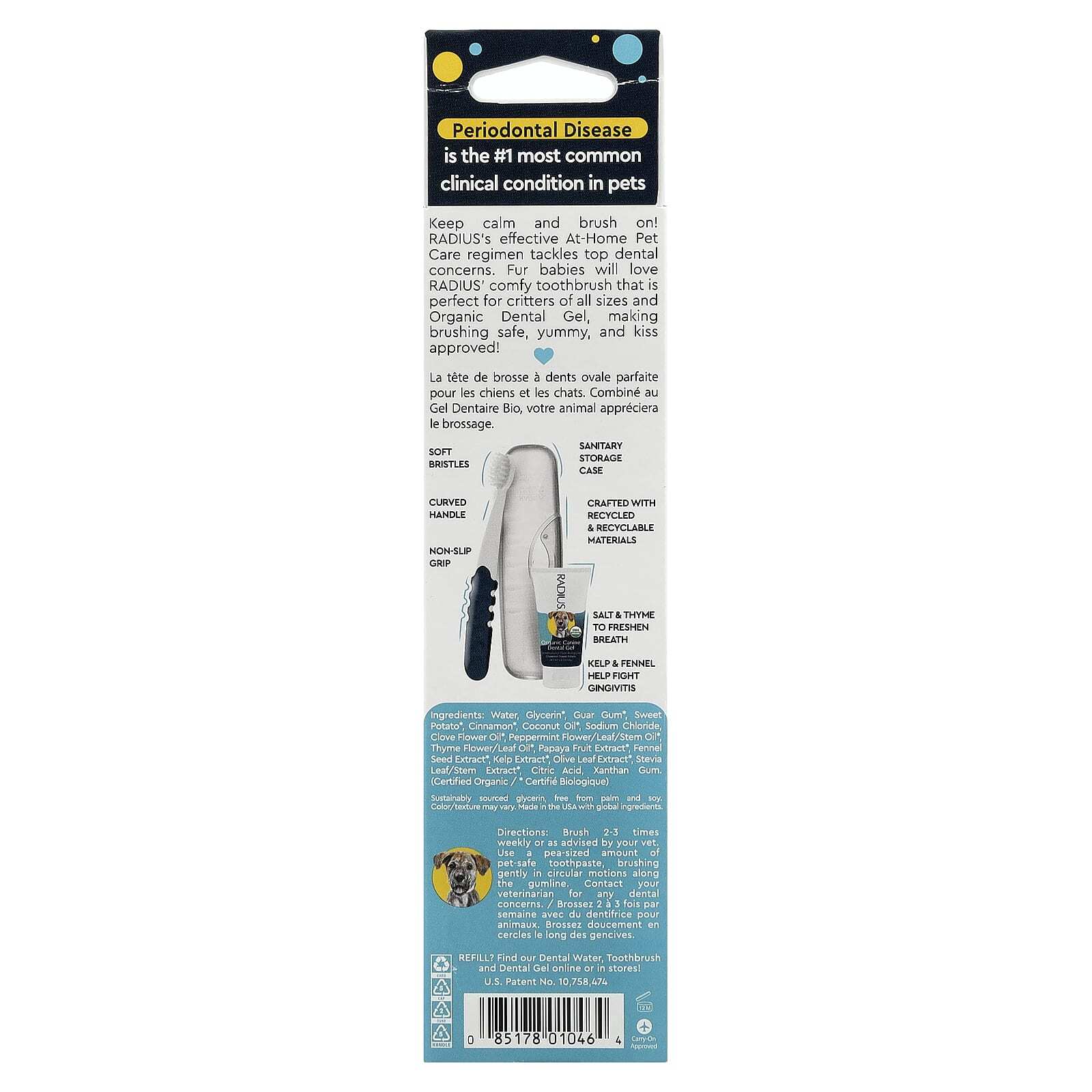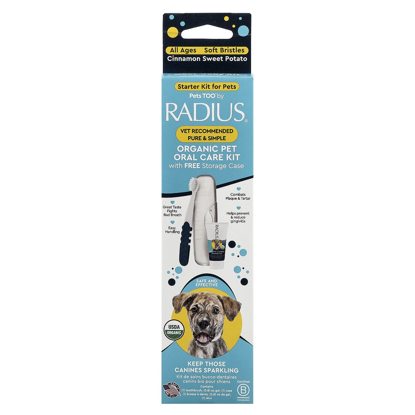 Сохраняйте спокойствие и продолжайте работу! Эффективный режим ухода за домашними животными от RADIUS решает самые серьезные стоматологические проблемы. Меховым малышам понравится удобная зубная щетка RADIUS, которая идеально подходит для животных всех размеров, а также органический гель для чистки зубов, делающий чистку зубов безопасной, вкусной и одобренной для поцелуев!