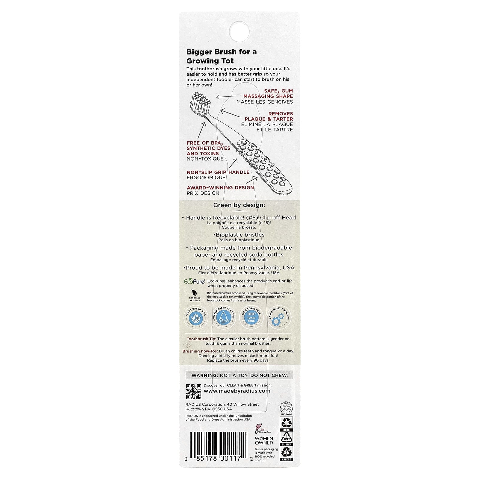 Эта зубная щетка растет вместе с вашим малышом. Ее легче удерживать, и она лучше захватывается, поэтому ваш независимый малыш может начать чистить зубы самостоятельно!