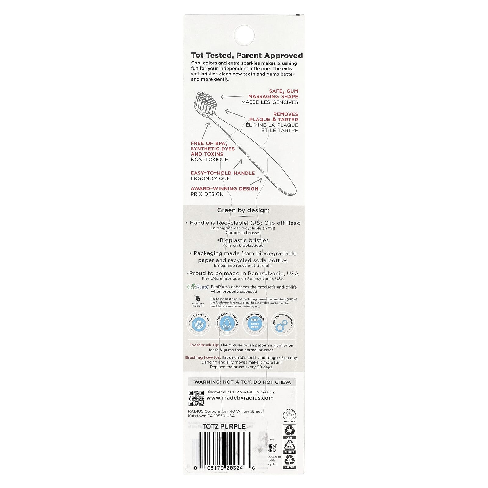RADIUS, Totz®, зубная щетка для детей от 18 месяцев, экстрамягкая, фиолетовый блеск, 1 шт.