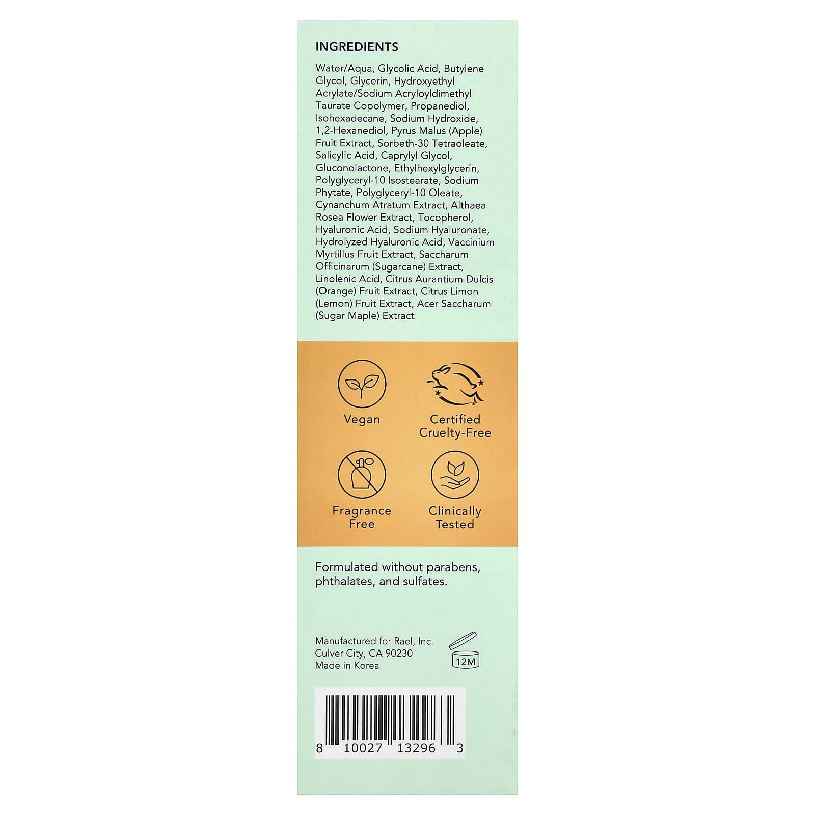 Нанесите ровный слой на очищенную кожу. Оставьте для ухода всего за 3 минуты или до 10 минут. Избегайте области вокруг глаз. Тщательно смойте и нанесите сыворотку от акне Rael Miracle.