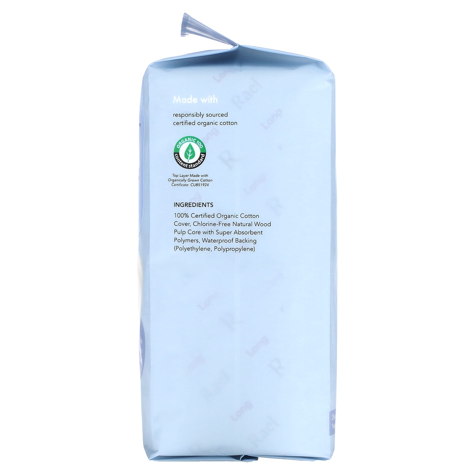 Внешний слой из 100% сертифицированного органического хлопка, сердцевина из натуральной древесной массы без хлора с супервпитывающими полимерами, водонепроницаемая основа (полиэтилен, полипропилен).