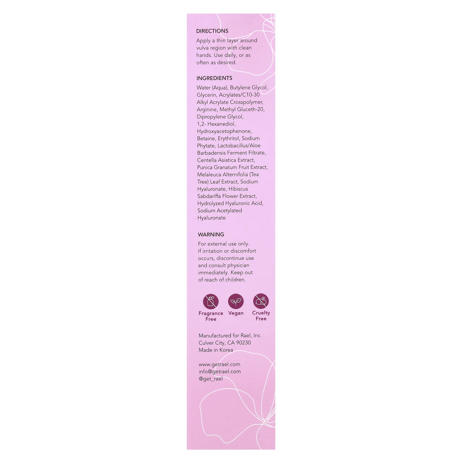 Чистыми руками нанесите тонким слоем на область вульвы. Использовать ежедневно или по желанию.