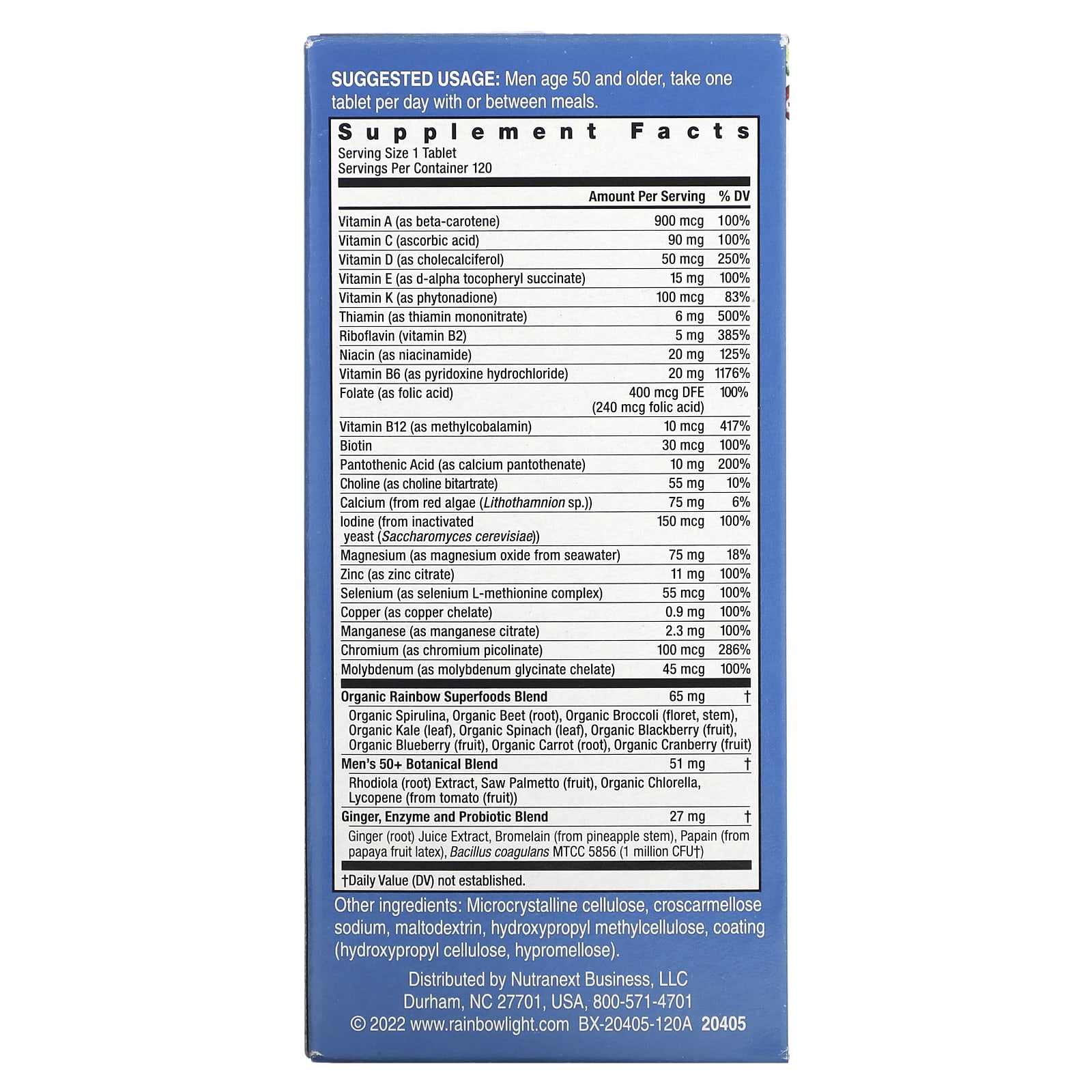 Rainbow Light, Men One 50+ Daily, мультивитамины, высокая эффективность, 120 вегетарианских таблеток