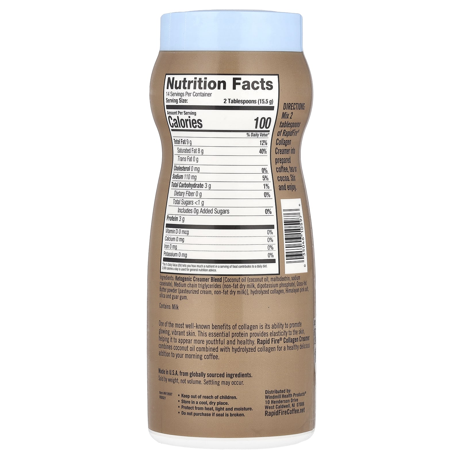 Одним из наиболее известных преимуществ коллагена является его способность делать кожу сияющей и сияющей. Этот незаменимый белок придает коже эластичность, помогая ей выглядеть более молодой и здоровой. Сливки с коллагеном от RapidFire® содержат кокосовое масло и гидролизованный коллаген, которые станут полезным и вкусным дополнением к вашему утреннему кофе.