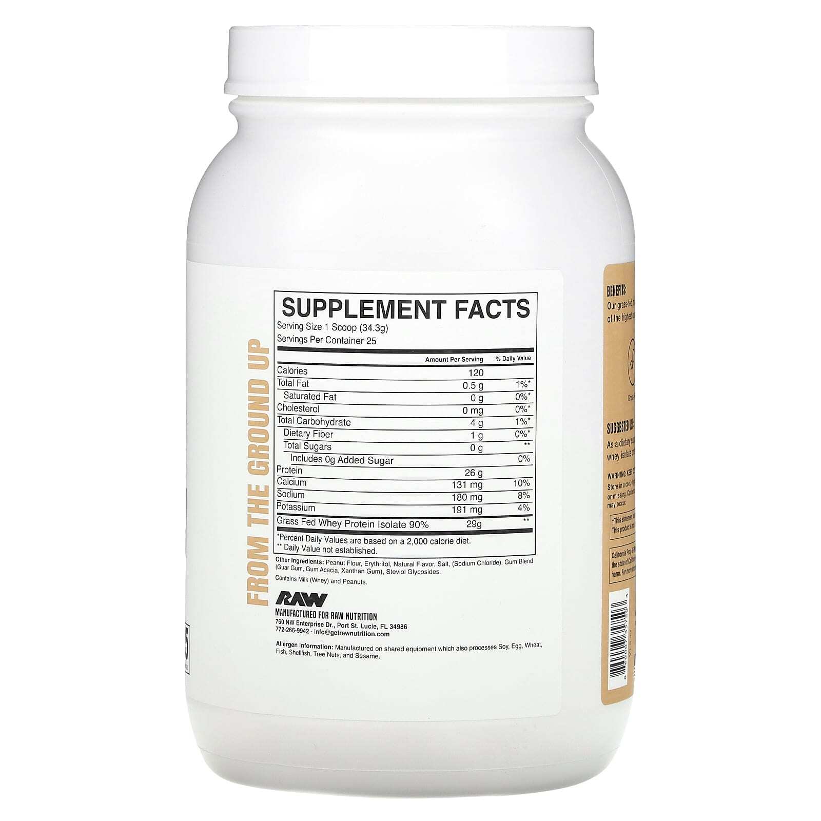 Raw Nutrition, сывороточный изолят сывороточного протеина от коров травяного откорма, с арахисовым маслом, 857,5 г (1,89 фунта)
