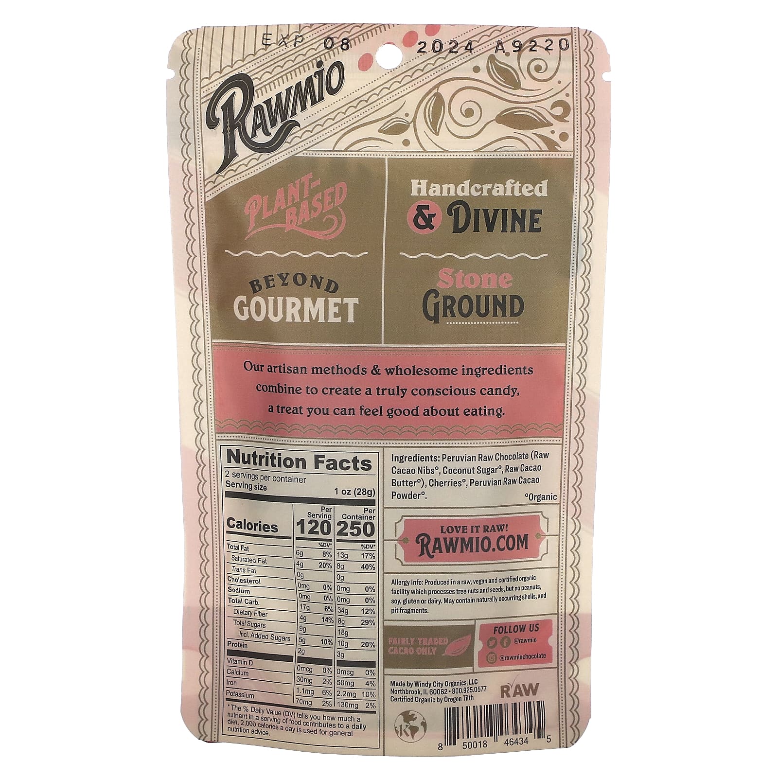 Перуанский необработанный шоколад (необработанные какао-бобы º, кокосовый сахарº, сырое масло какао º), вишняº, перуанский необработанный порошок какаоº.