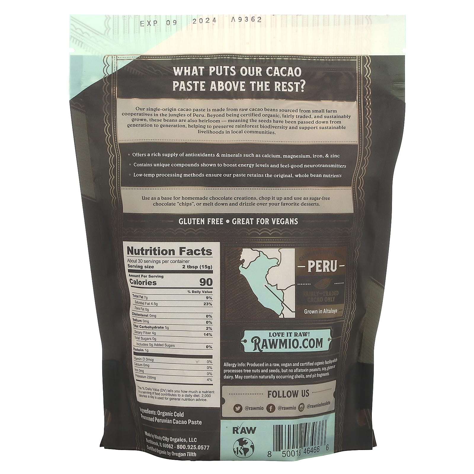Органическая перуанская какао-паста холодной обработки.